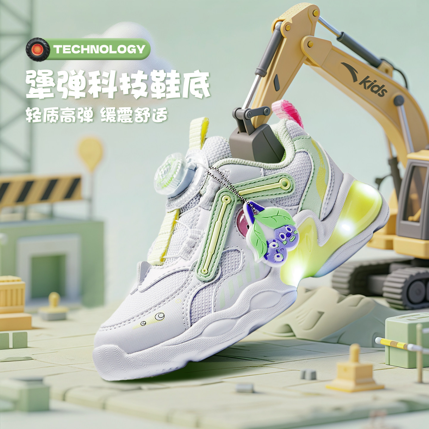 安踏童鞋女宝宝灯鞋2025新款秋冬跑鞋发光鞋子闪光小孩运动鞋女童