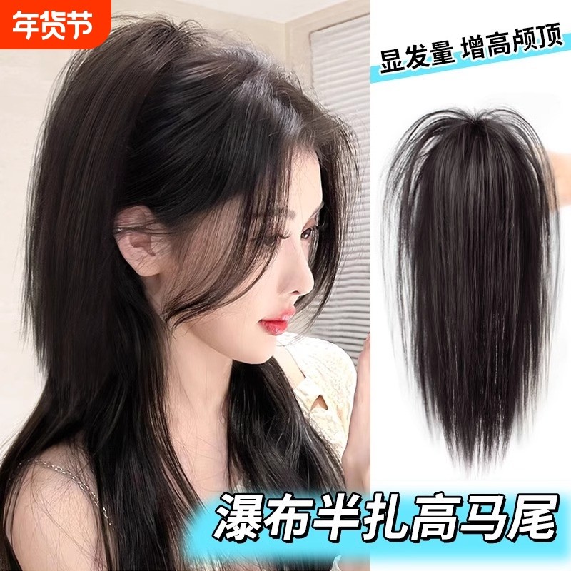 马尾假发女仿真发自然抓夹瀑布半扎高马尾辣妹后脑勺假发辫马尾