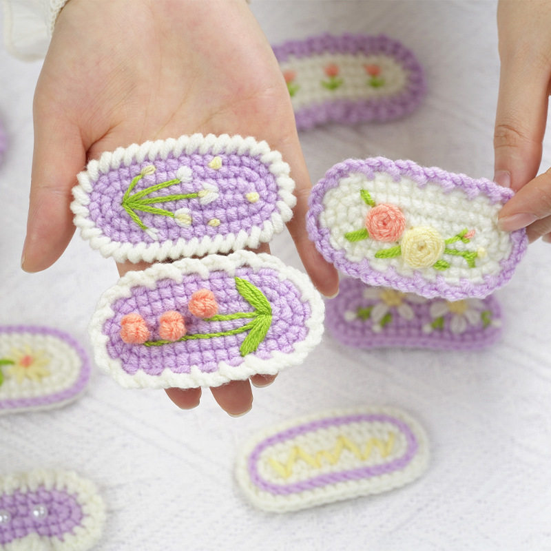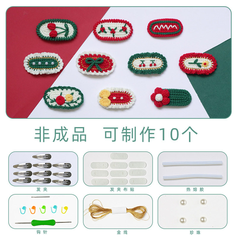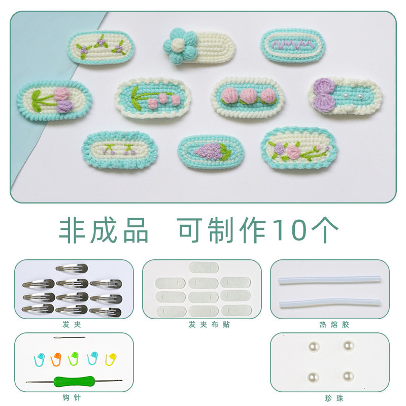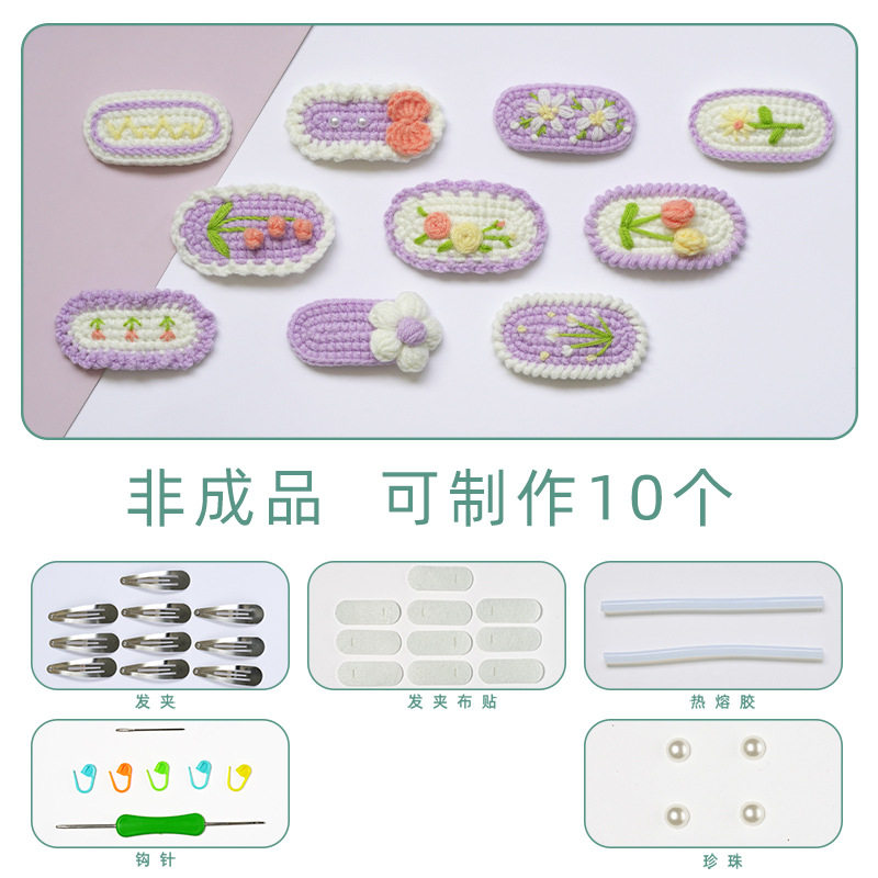 手工钩针编织发夹批发甜美小清新风diy材料包刺绣花发夹精致边夹