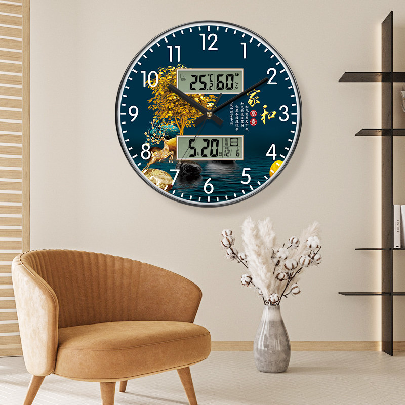 新款大吉大利客厅家用时尚双日历静音挂钟万年历现代温度钟表时钟