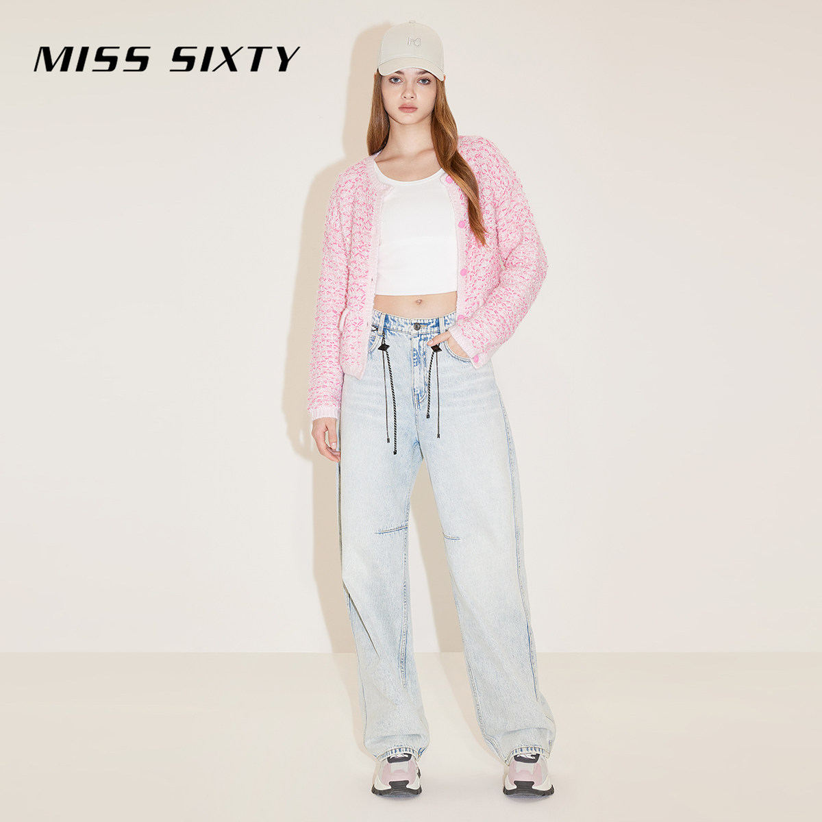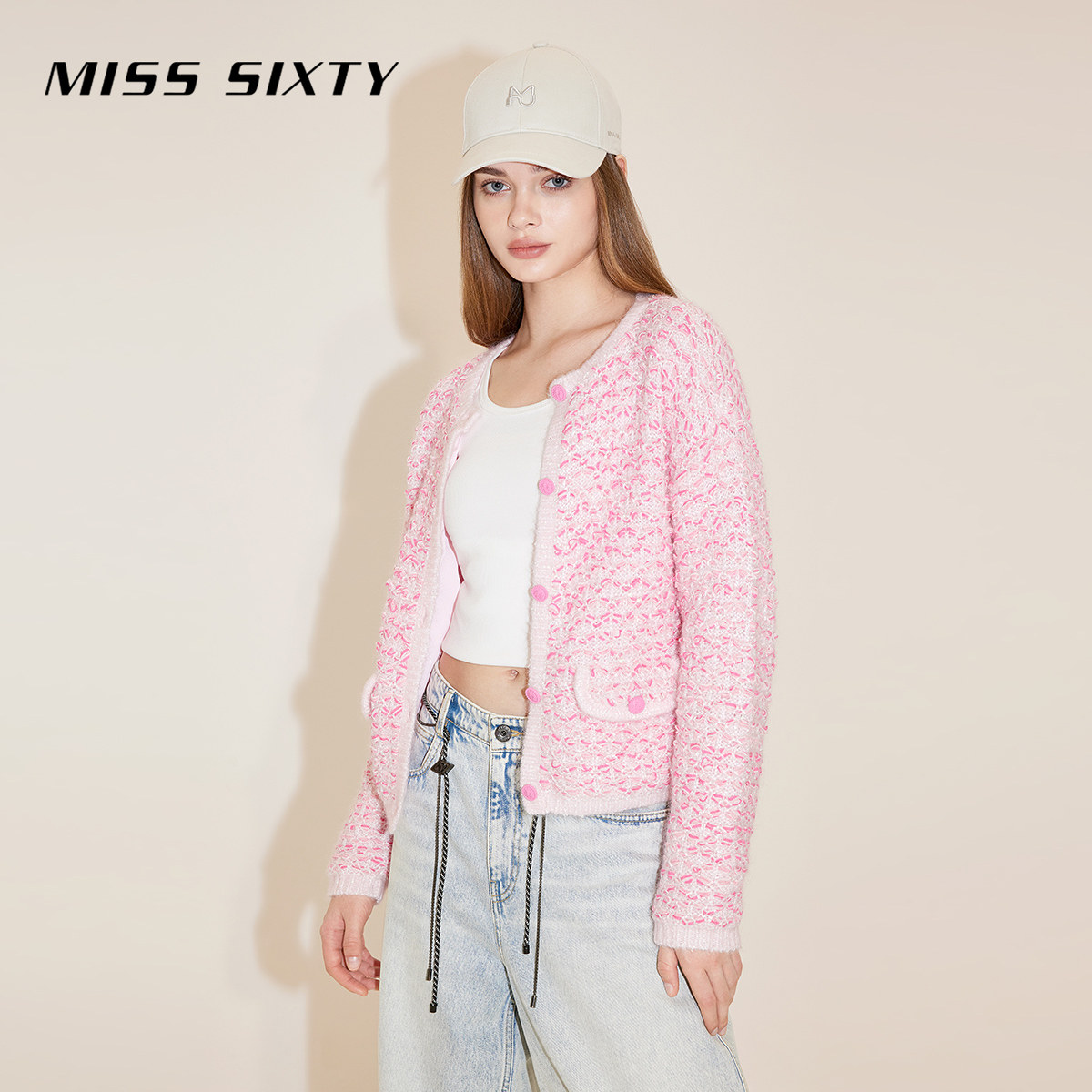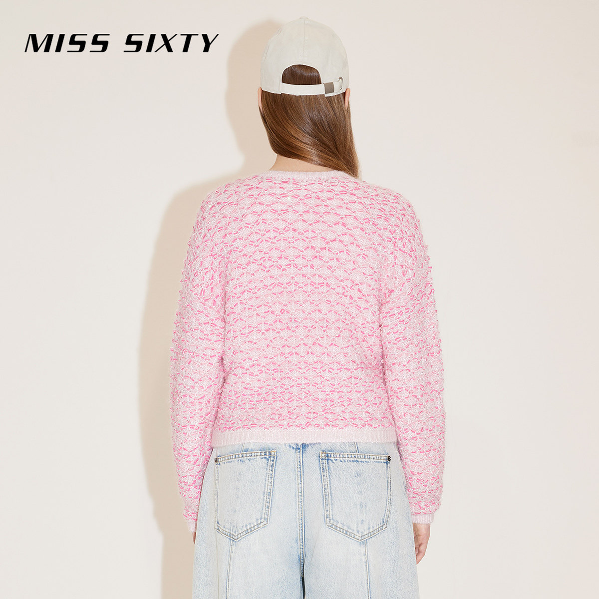 Miss Sixty针织衫女甜美气质粉红色短上衣外套亮片花式纱毛衣