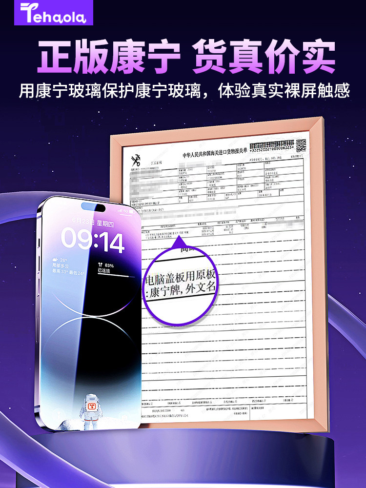 买一送一康宁无尘仓贴膜无纹膜防爆手感顺滑