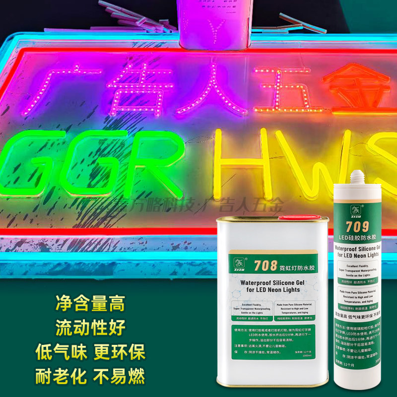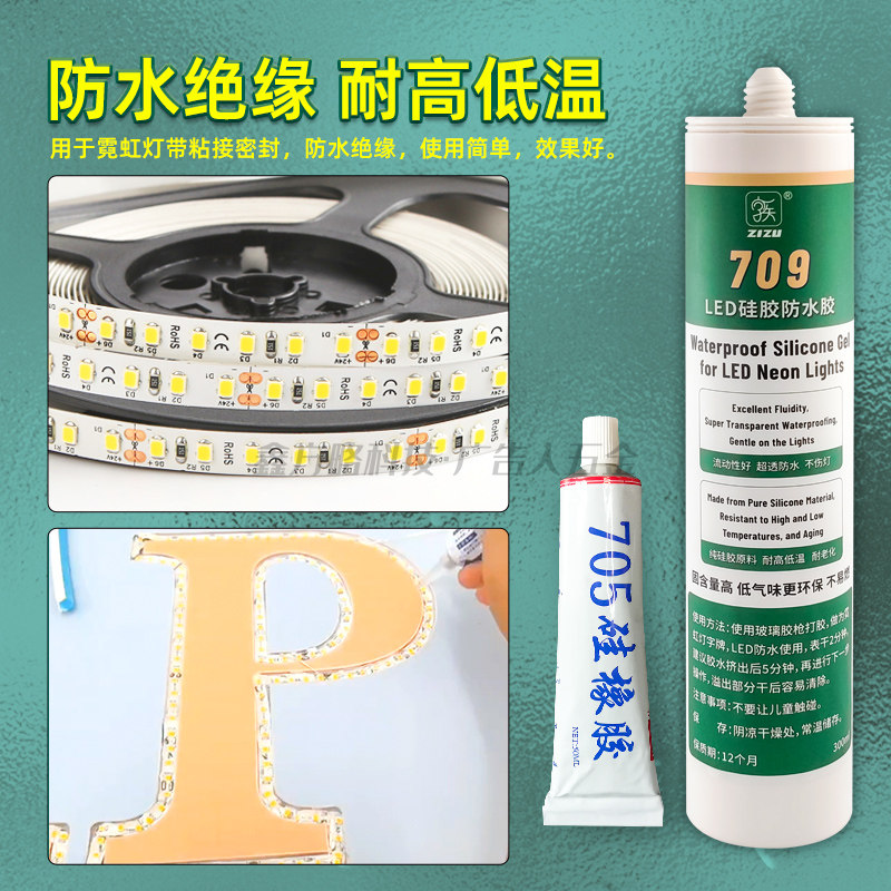 霓虹灯防水胶水 硅胶LED软灯条胶水防水绝缘硅胶密封胶水环保安全