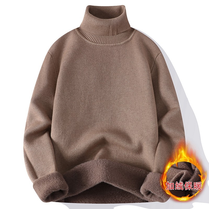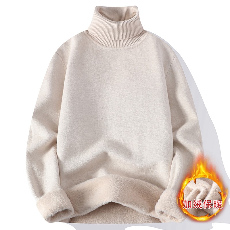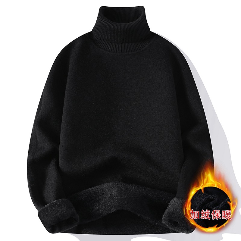 回力一体绒高领毛衣男秋冬季针织线衣纯色打底衫加绒加厚保暖上衣