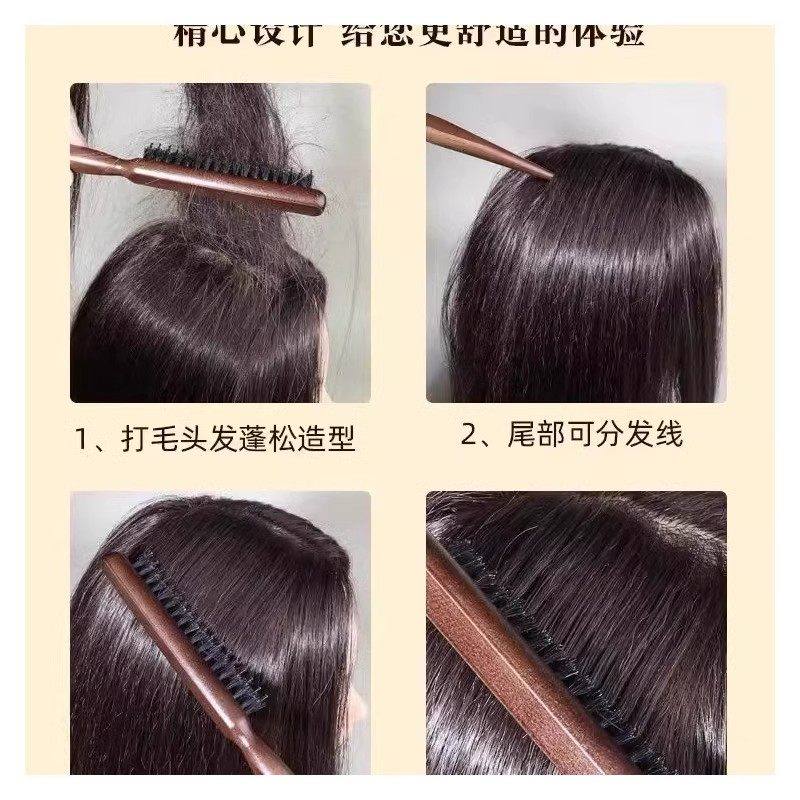 猪鬃毛窄齿梳美发三排打毛梳子蓬松造型长柄化妆尖尾盘发卷发木梳