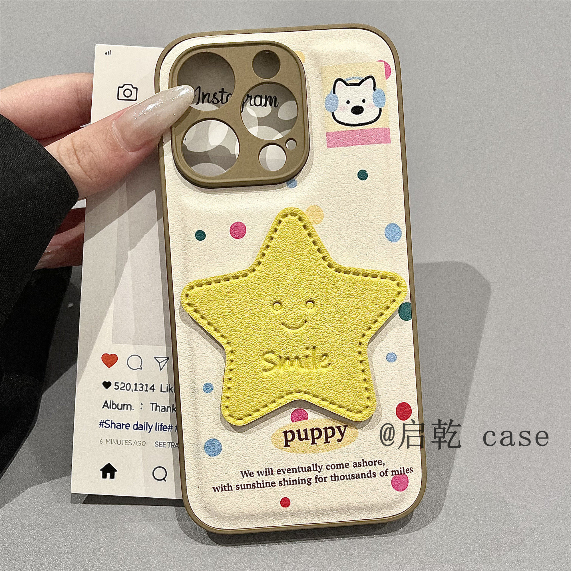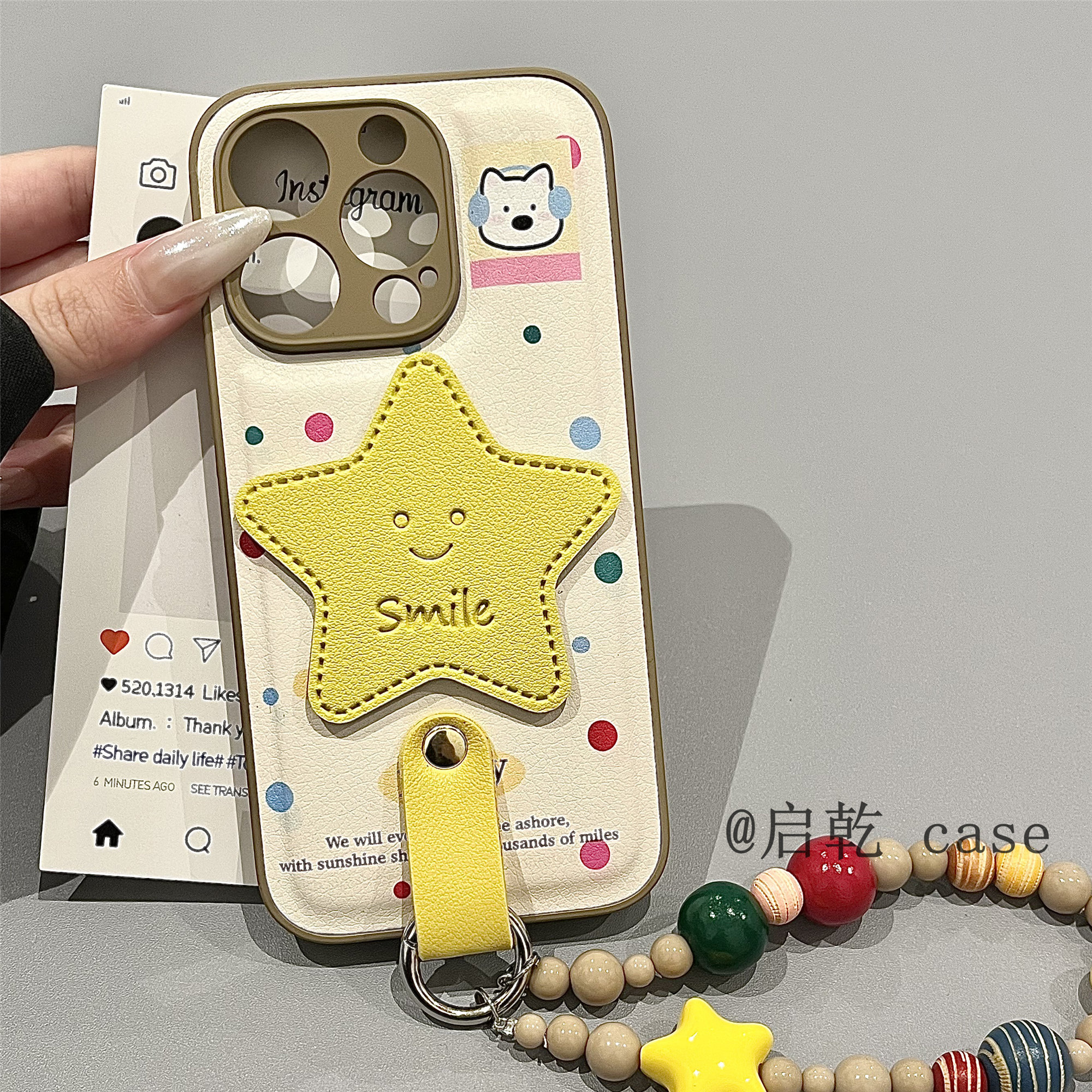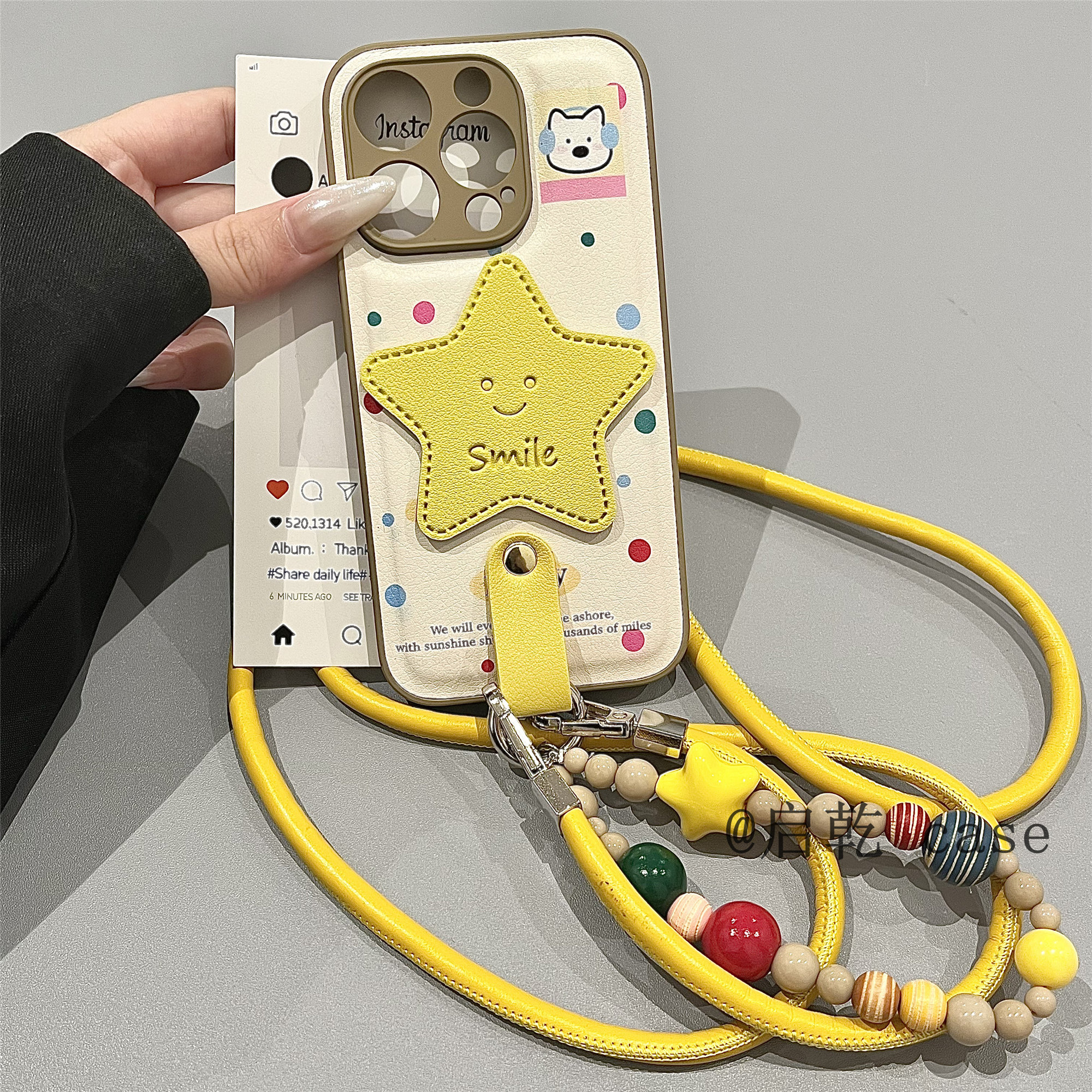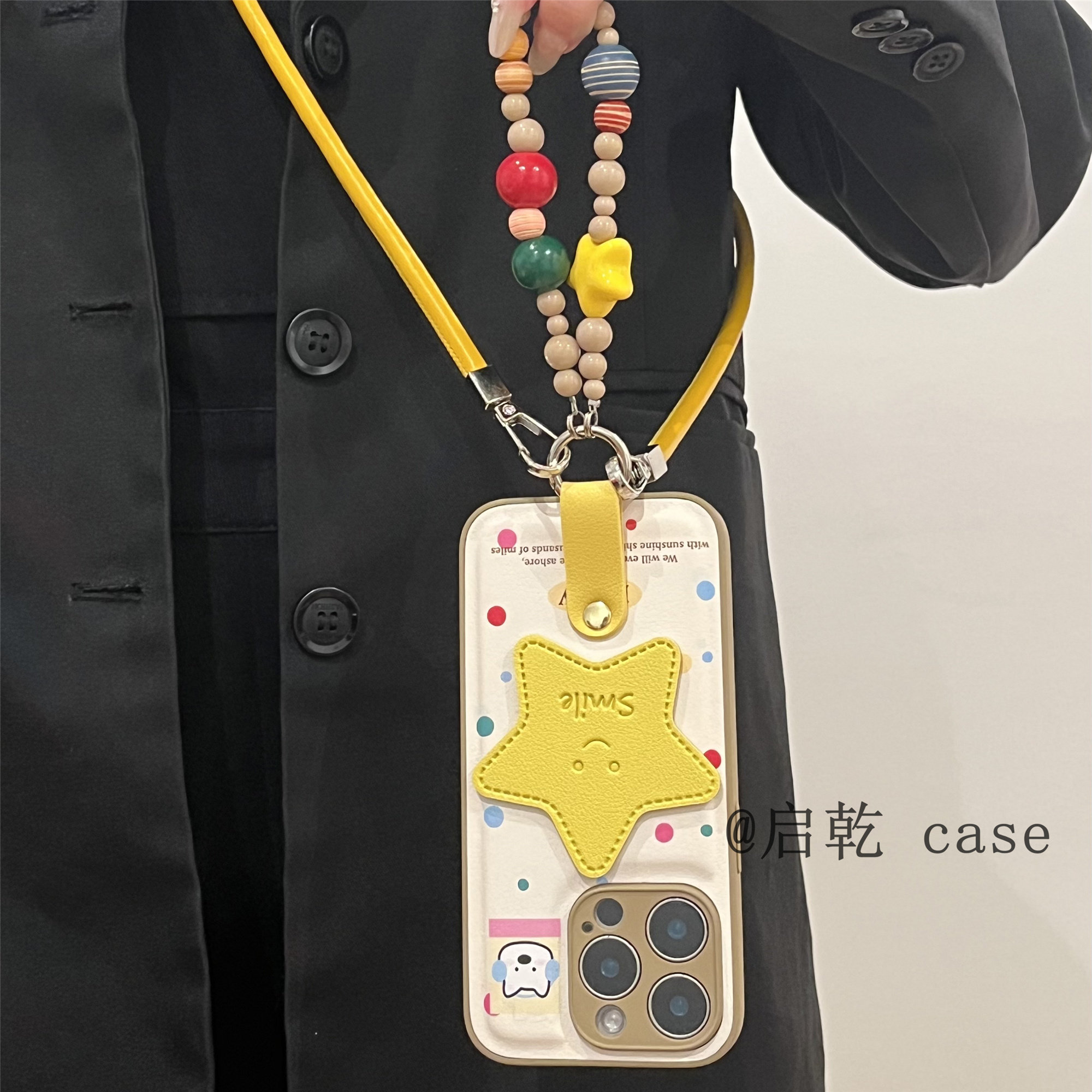 启乾 可背斜挎背包式iPhone16/15手机壳适用苹果14/13promax皮质硬壳彩色波点星星链条挂绳可爱卡通新款全包