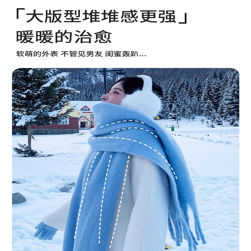 蓝色围巾女款2025新款秋冬季感高级感围脖马海毛加厚女士白色粉色
