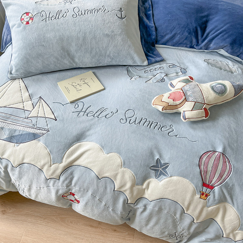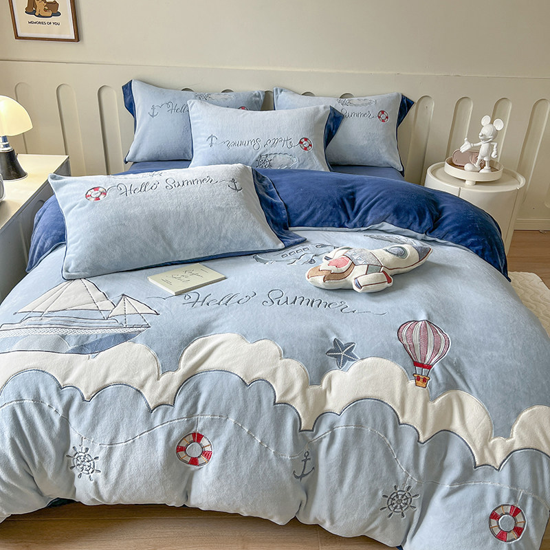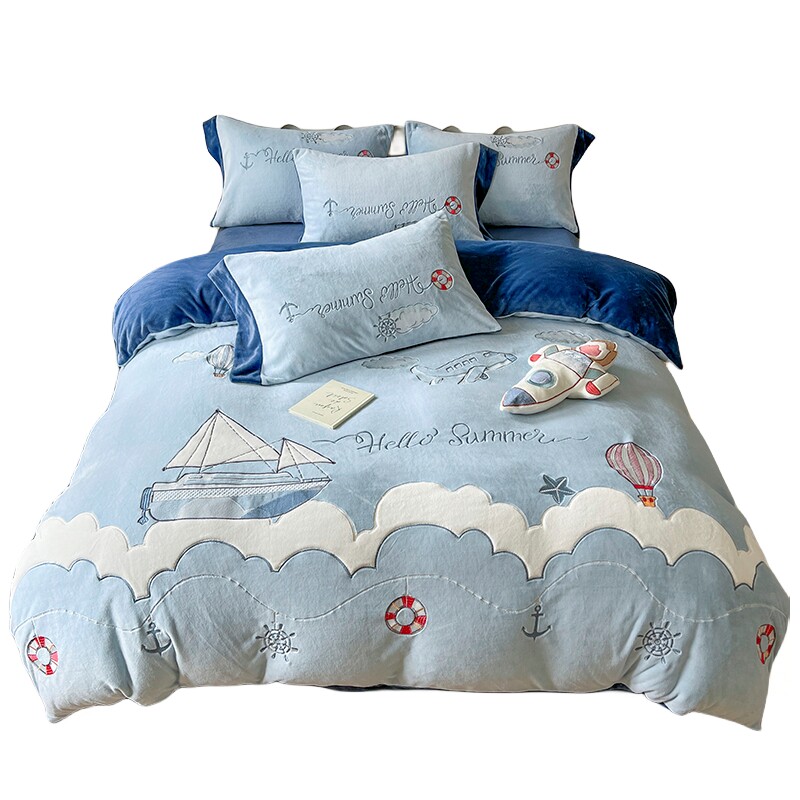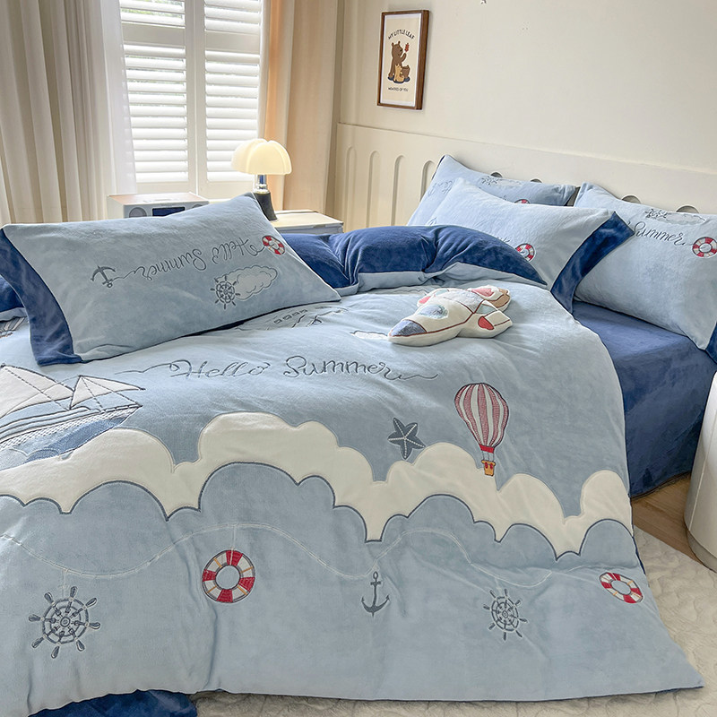 卡通航海家牛奶绒四件套冬天加厚保暖珊瑚绒被套男孩儿童床上用品