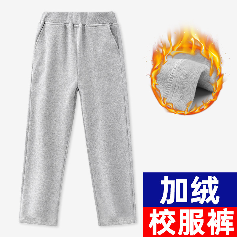 男童加绒运动裤小学生灰色加厚校裤秋冬儿童秋冬季校服裤子女大童