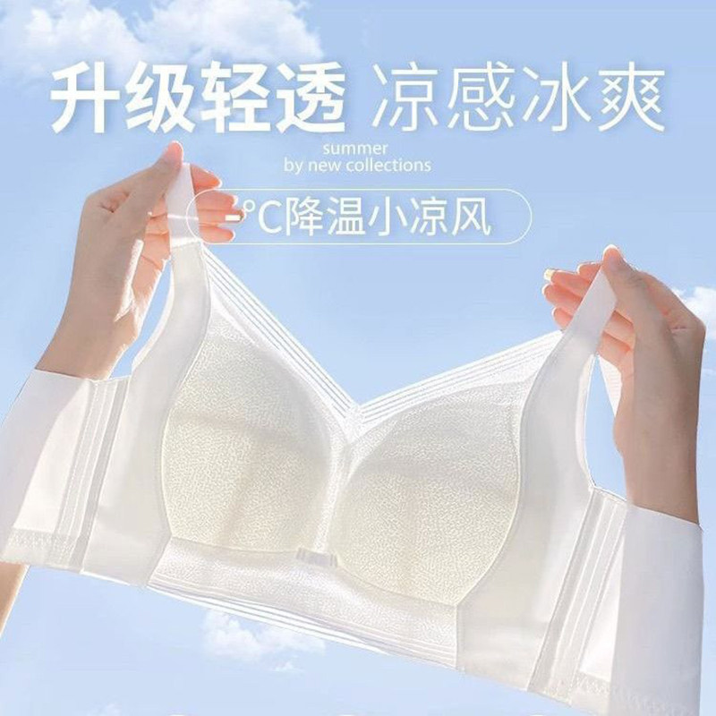 润微一拉薄大胸显小内衣女薄款无痕前扣拉链提拉防下垂收副乳文胸