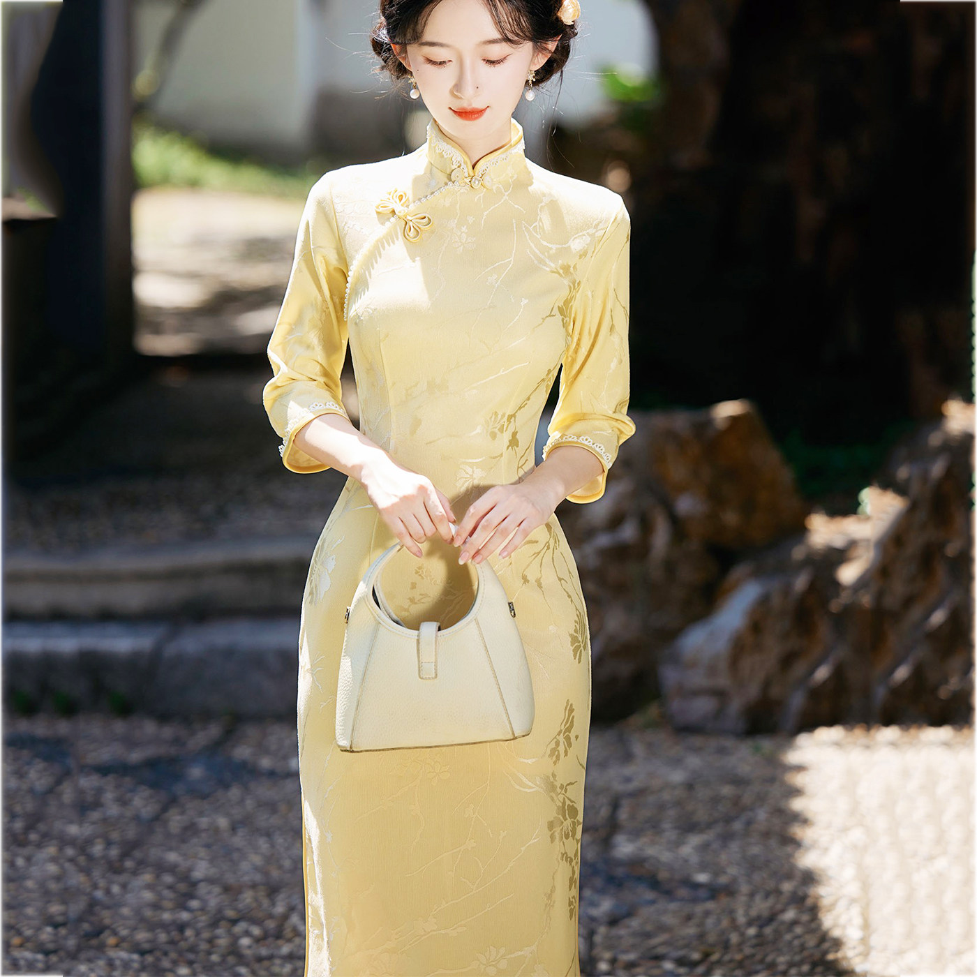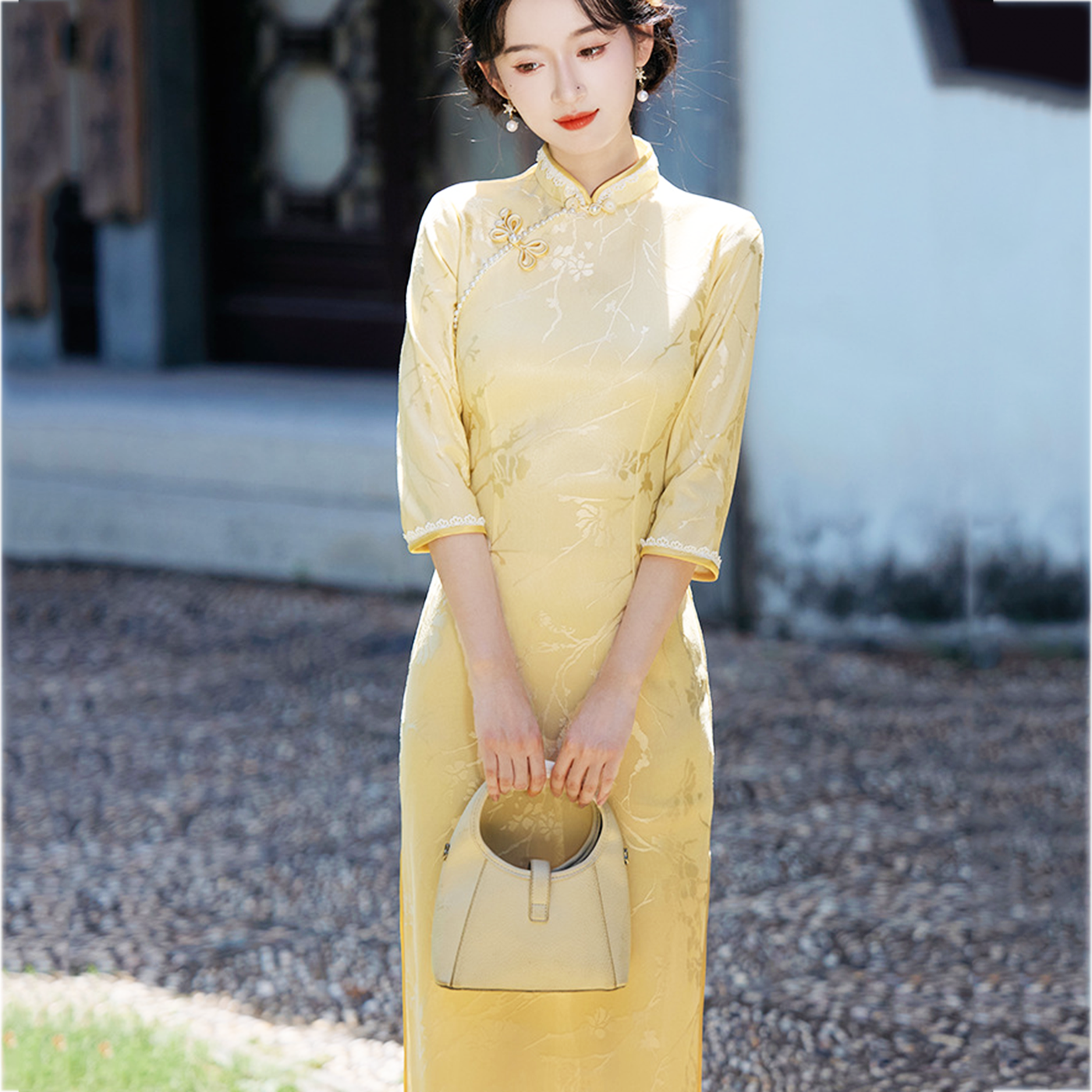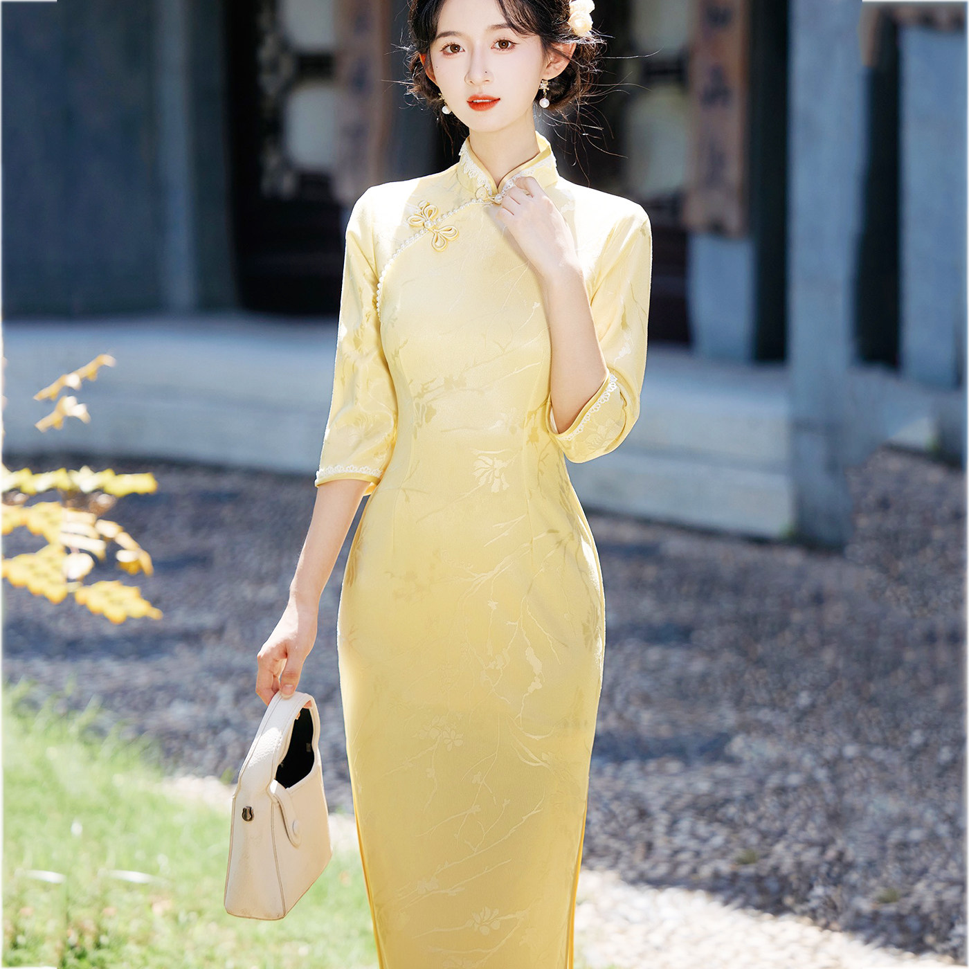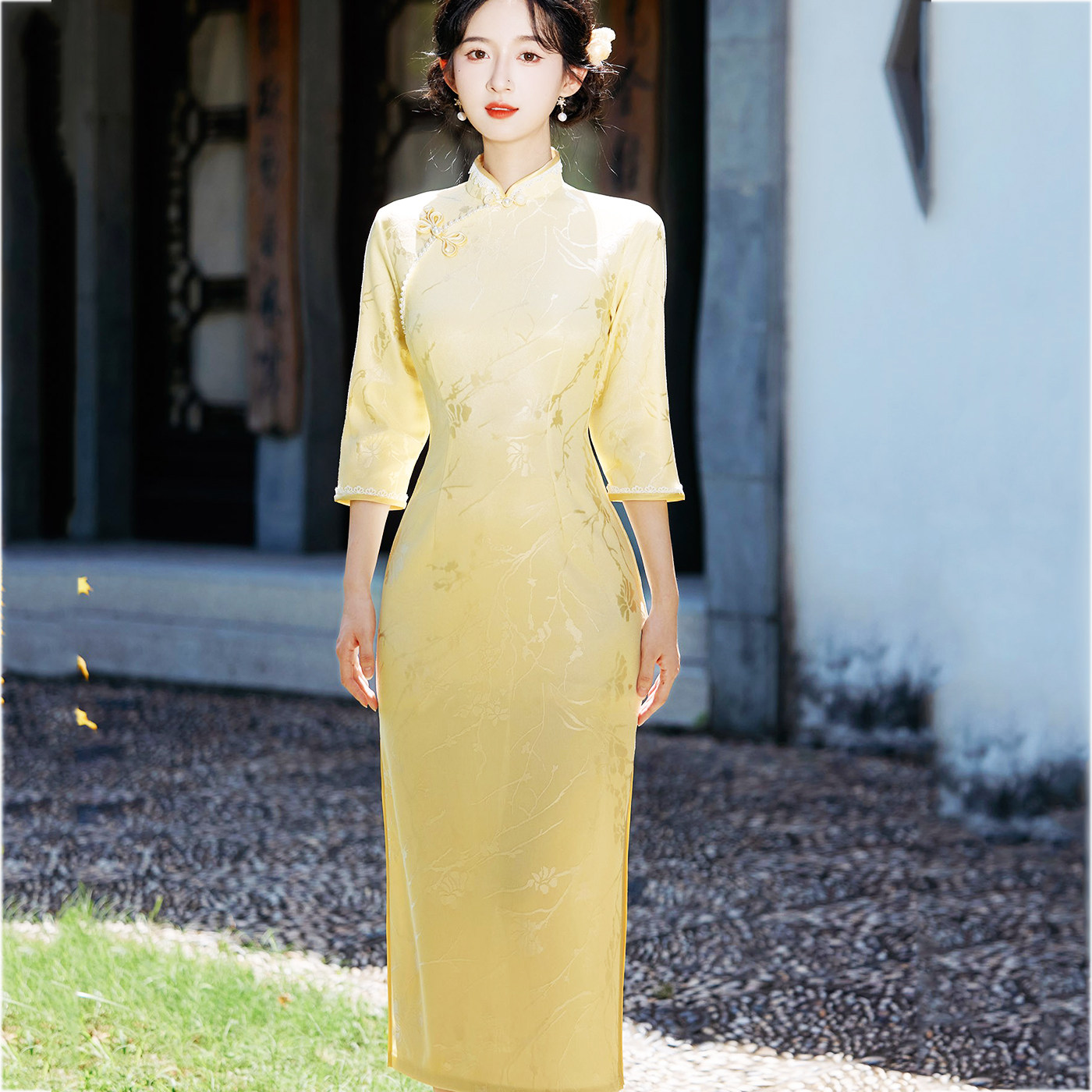 新中式国风气质清新订婚领证结婚宴回门出阁舞蹈走秀表演民族旗袍