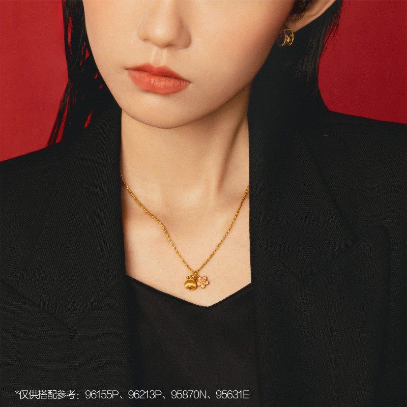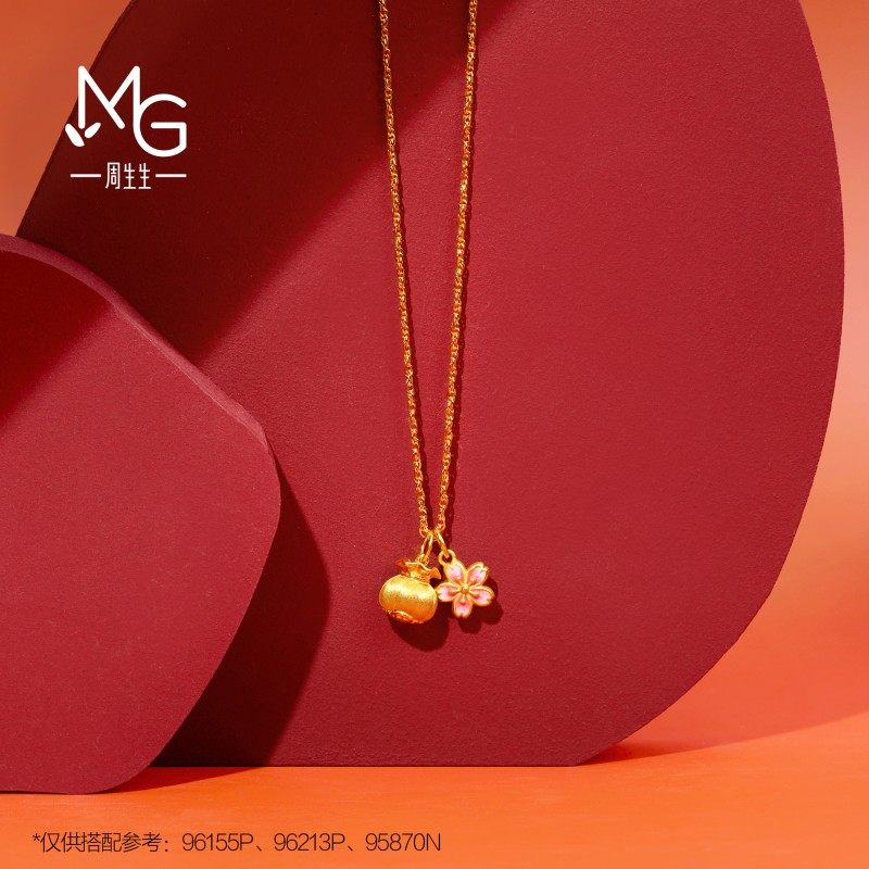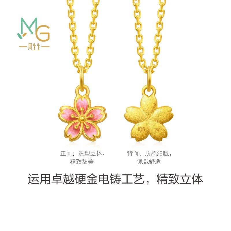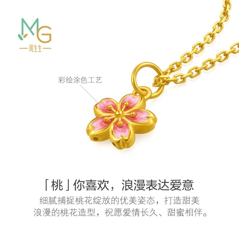 圣诞礼物周生生珠宝薄荷系列mini小桃花黄金小吊坠足金挂坠96213P