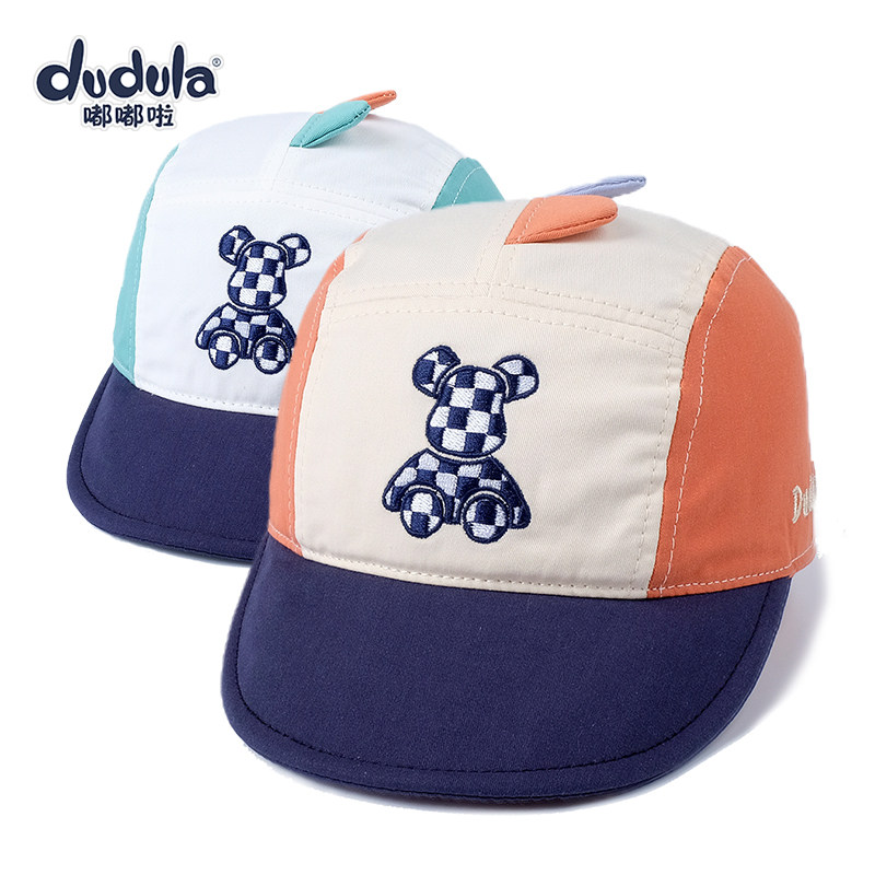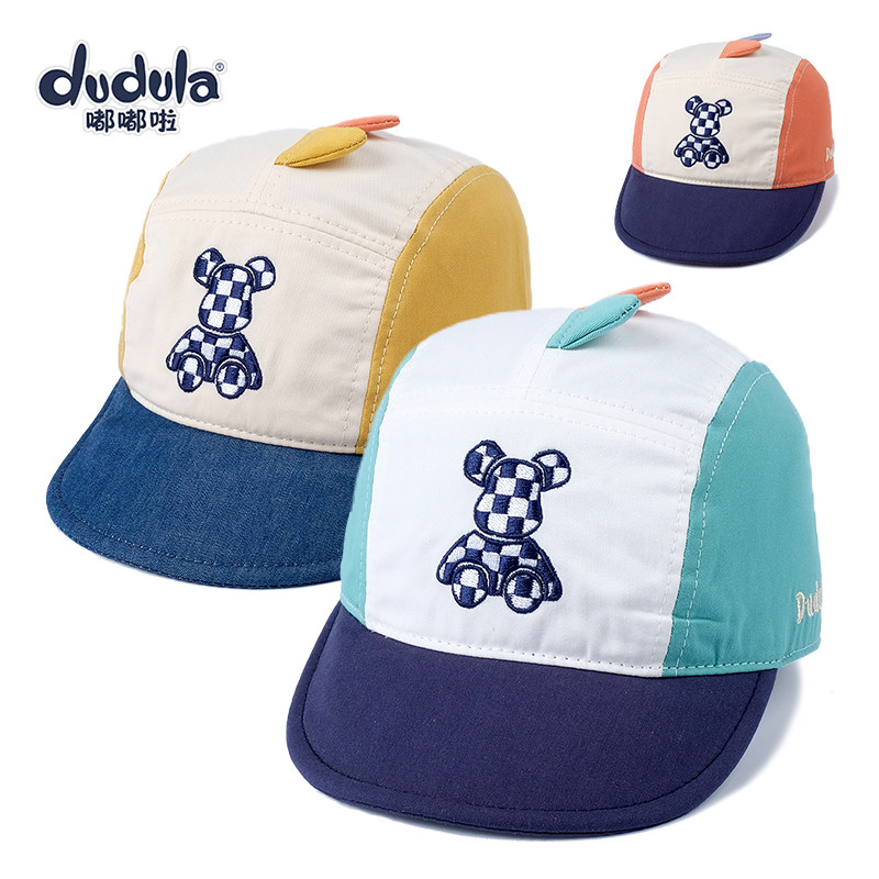 嘟嘟啦婴幼儿童鸭舌帽复古拼色男宝宝太阳帽软檐春秋薄款防晒帽子