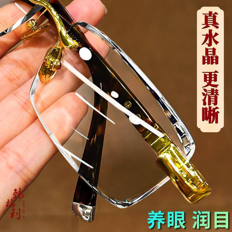水晶老花眼镜润目养眼方框时尚中老年高清耐磨无框老光镜
