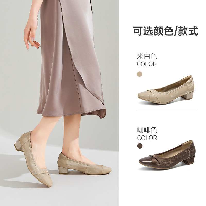 米霏~真皮奶奶鞋女粗跟2026春款法式单鞋中跟浅口晚晚鞋大码女鞋