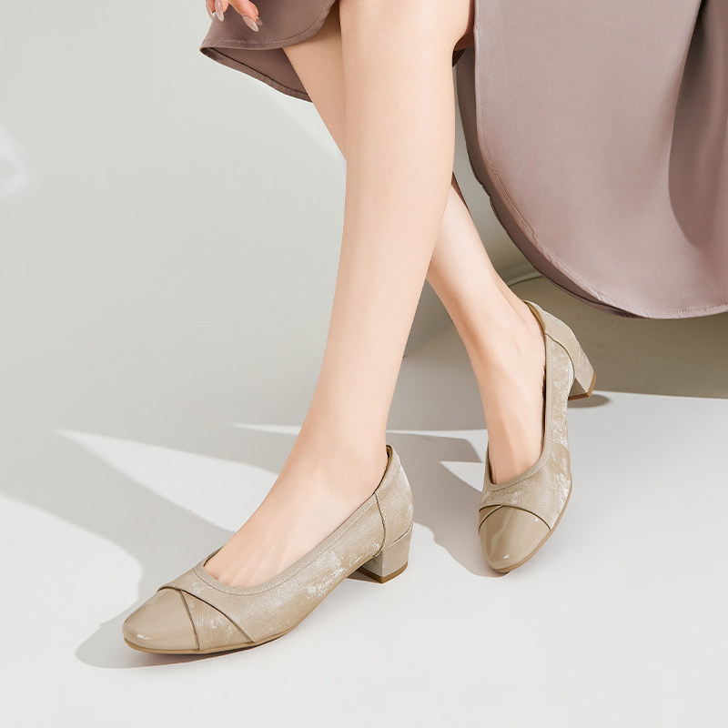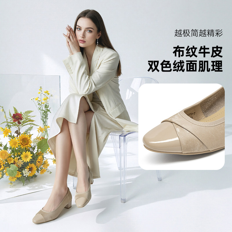 【明星同款|静音系列】千百度练习曲裸色高跟鞋真皮通勤法式单鞋