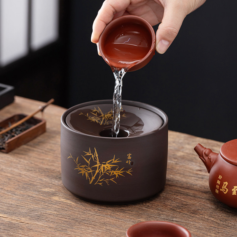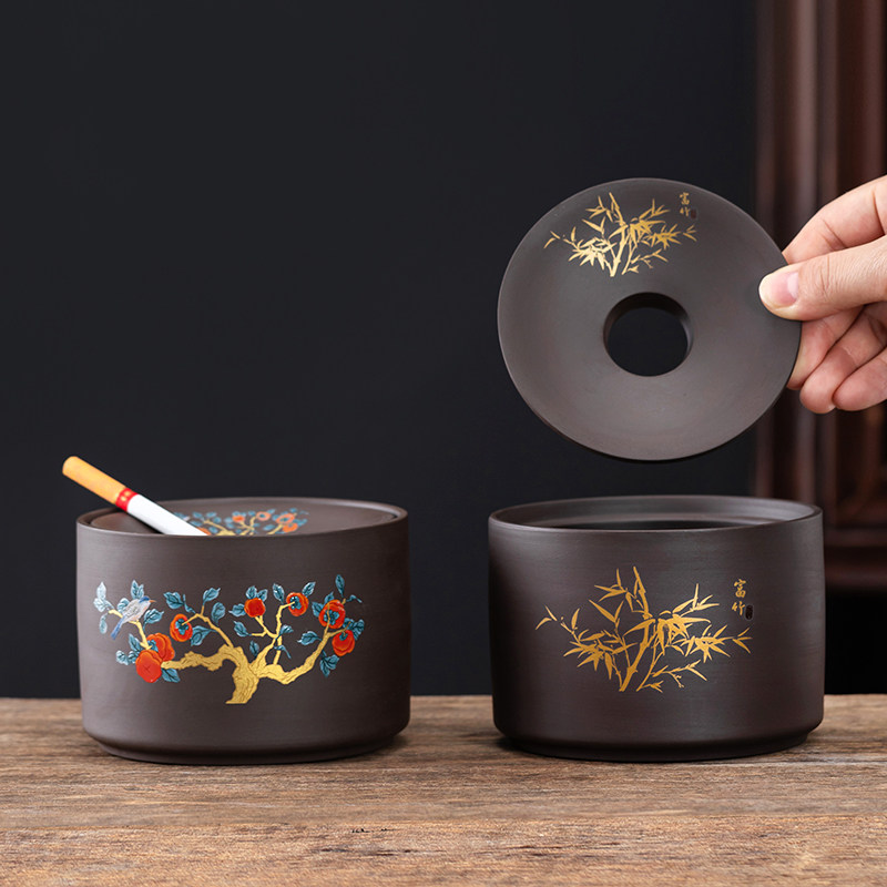 紫砂烟灰缸带盖创意大号复古个性家用客厅办公室烟陶瓷实用漏斗