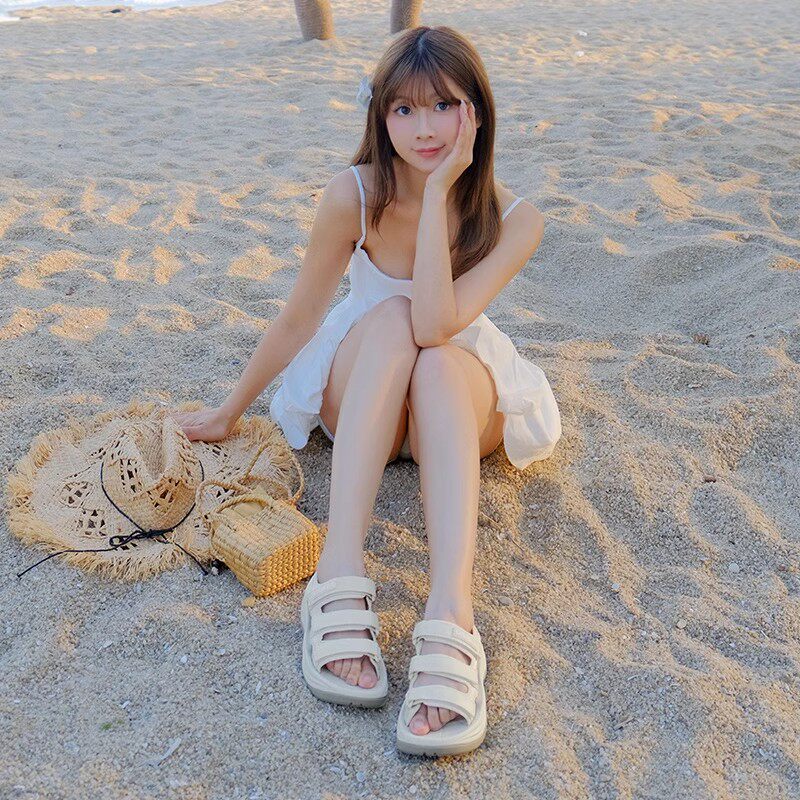 骆驼女鞋2026夏季新款百搭休闲凉鞋厚底增高凉鞋女魔术贴沙滩鞋女