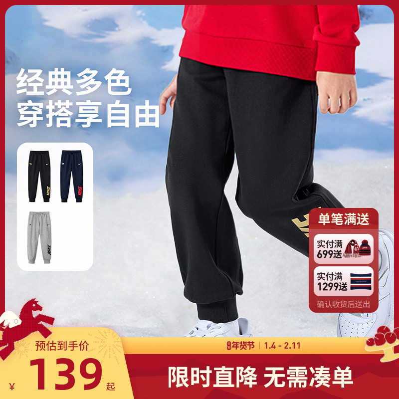 Nike 3brand童装儿童加绒长裤男童裤子2025冬季新款休闲裤运动裤