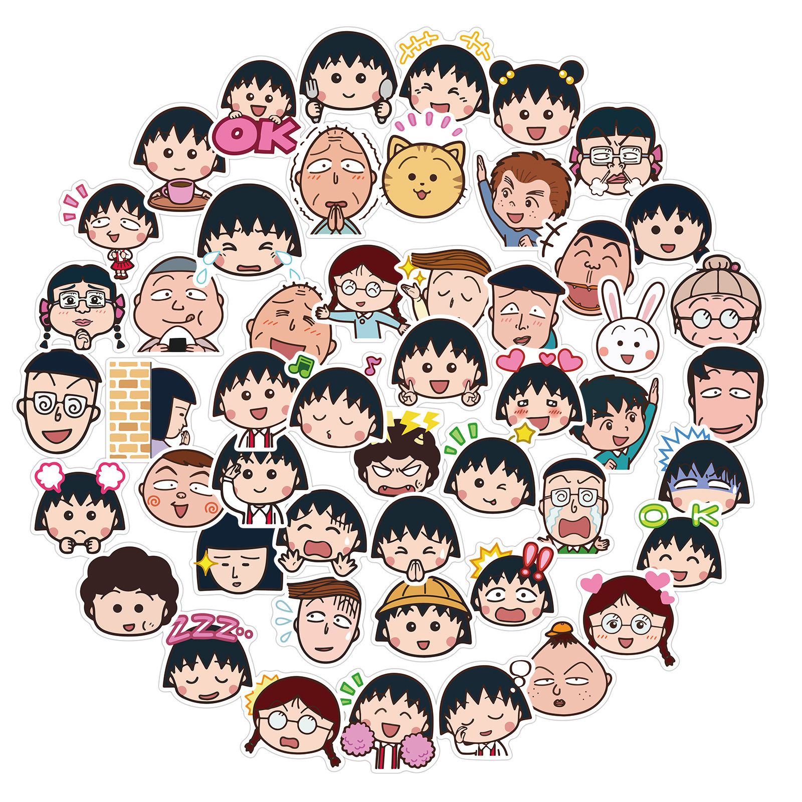 60张可爱樱桃小丸子表情涂鸦贴纸笔记本电脑平板机车手机杯子贴纸
