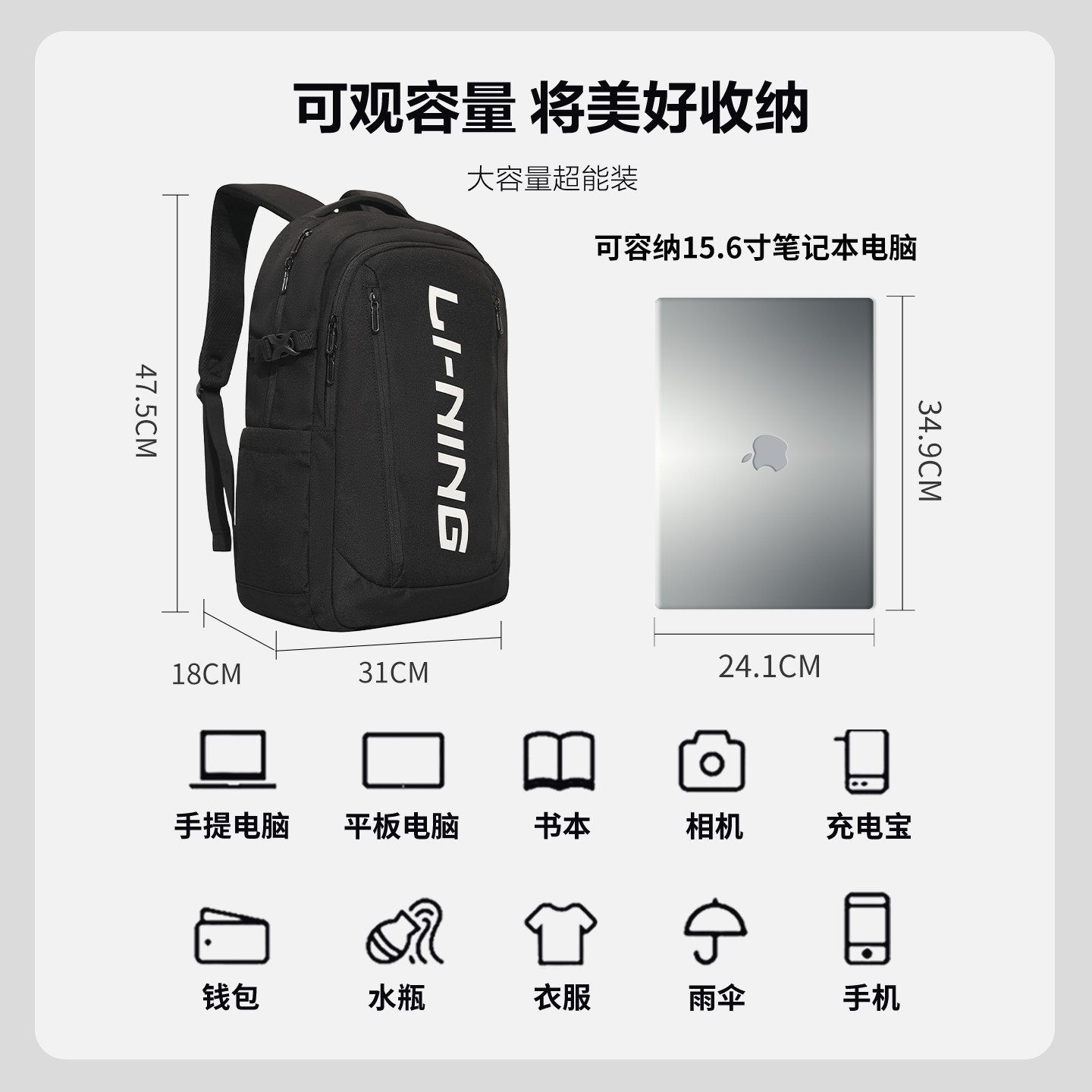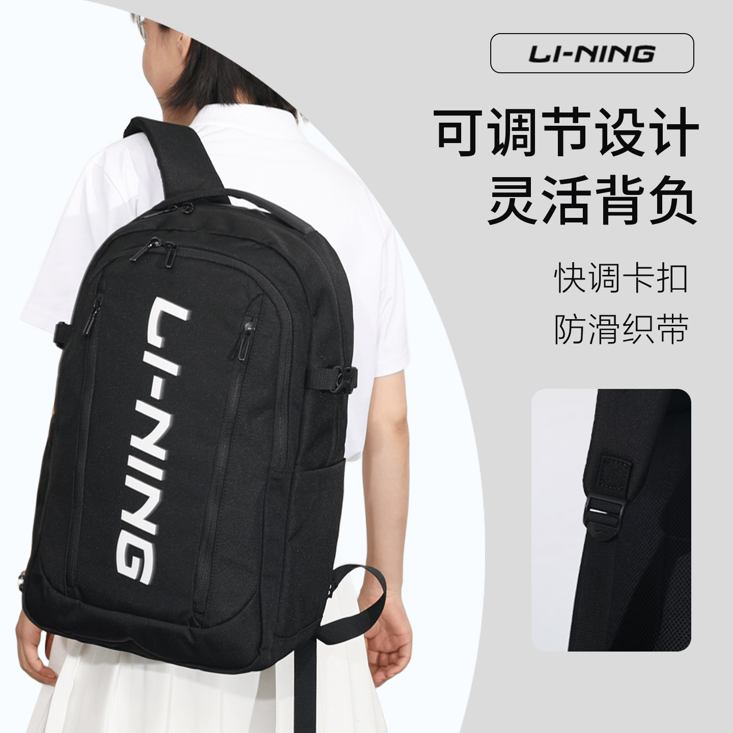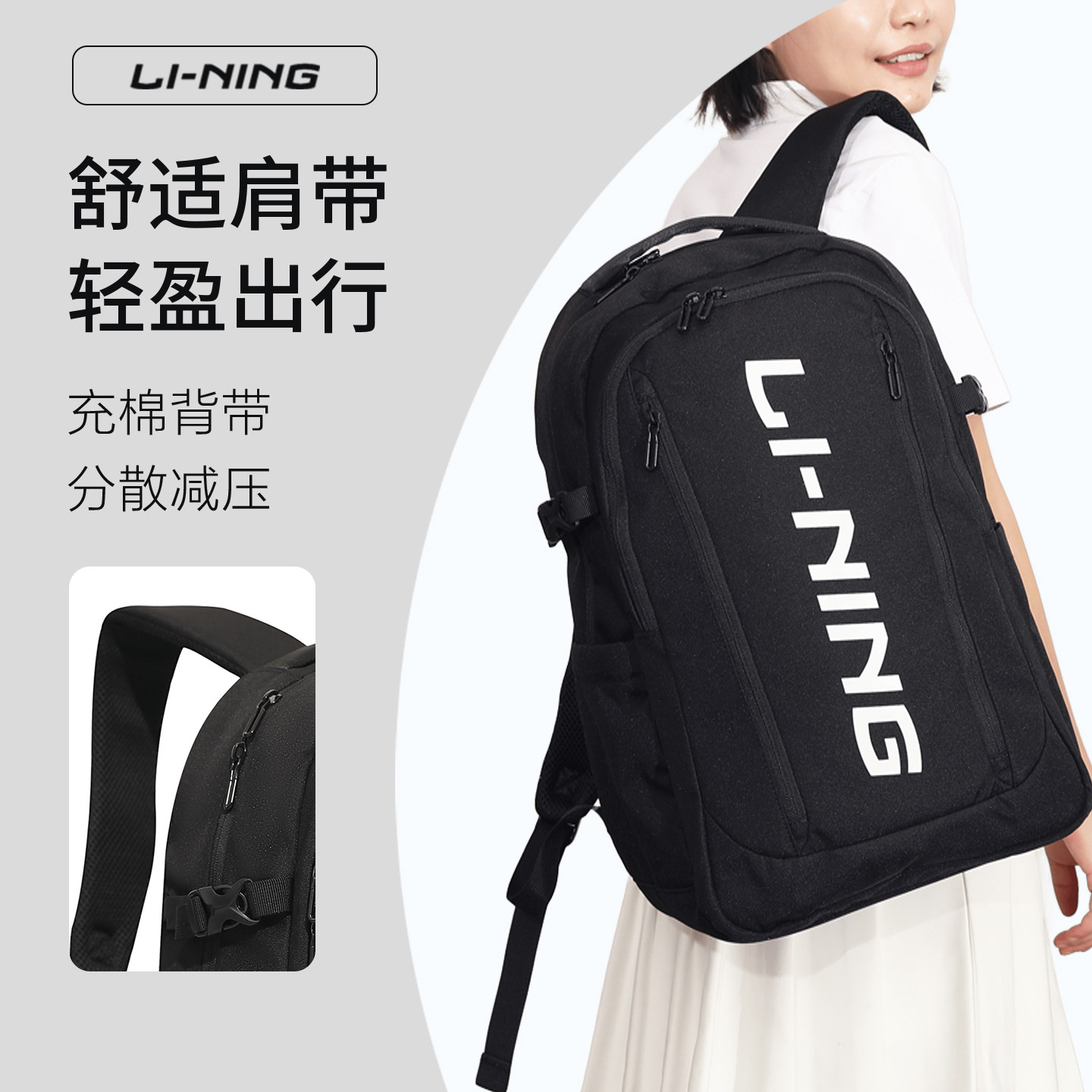 李宁双肩包大容量初中生高中生大学生书包2025年新款运动休闲背包