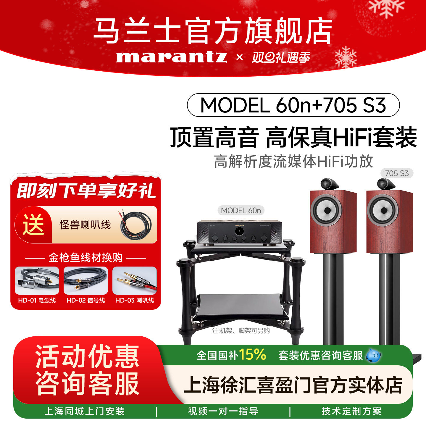 BW宝华韦健705S3无源音箱HiFi书架箱+马兰士网络蓝牙功放音响套装
