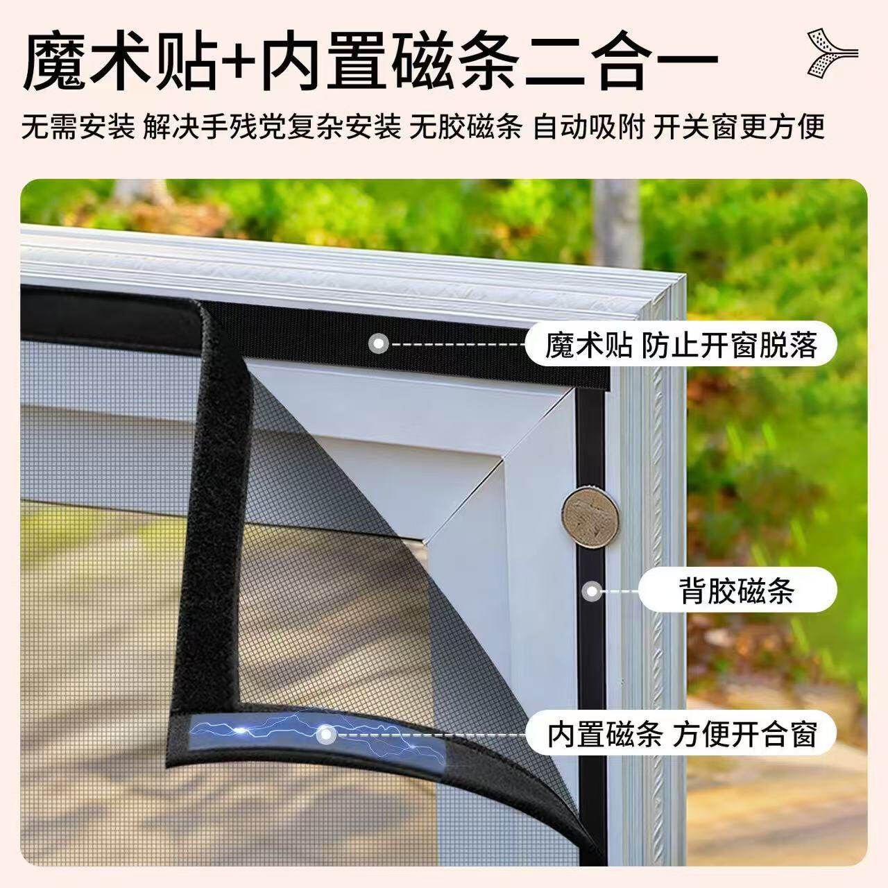 磁吸款防蚊窗纱自装强磁铁免打孔家用自粘纱窗纱网魔术贴隐形纱门