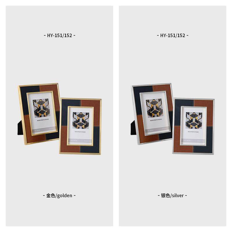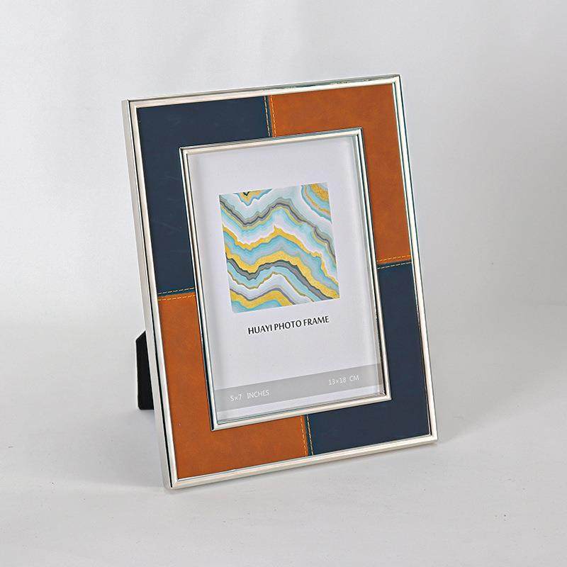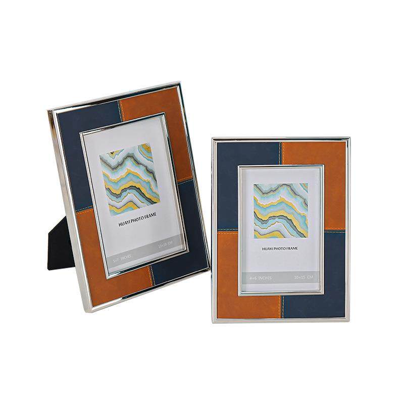 特价蓝橙双色皮革车缝线相框摆台金属边框软装饰设计师工艺品摆件