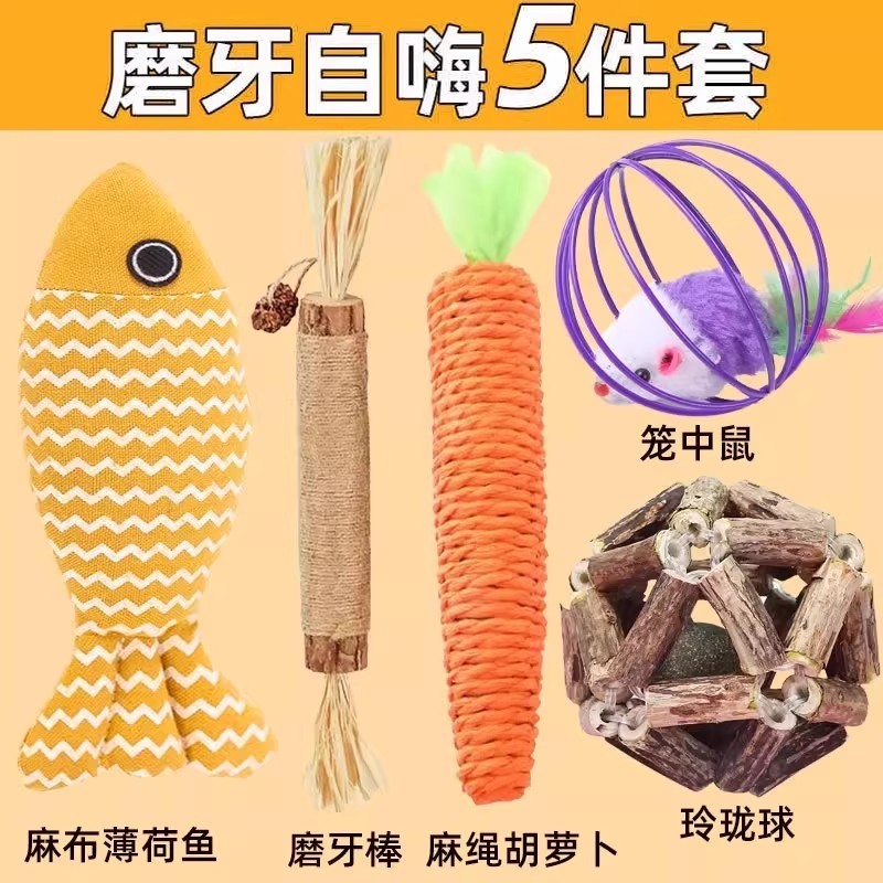 耐用猫玩具自嗨解闷逗猫棒磨牙耐咬剑麻球小猫咪清洁薄荷神器洁齿