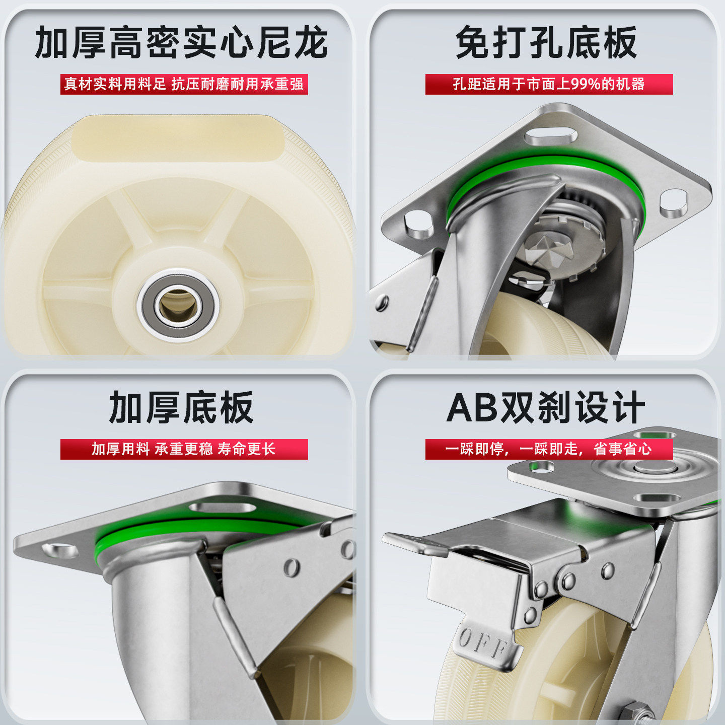 万向轮尼龙单轮轮片万向轮重型脚轮耐磨3寸4寸5寸6寸推车拖车轮子