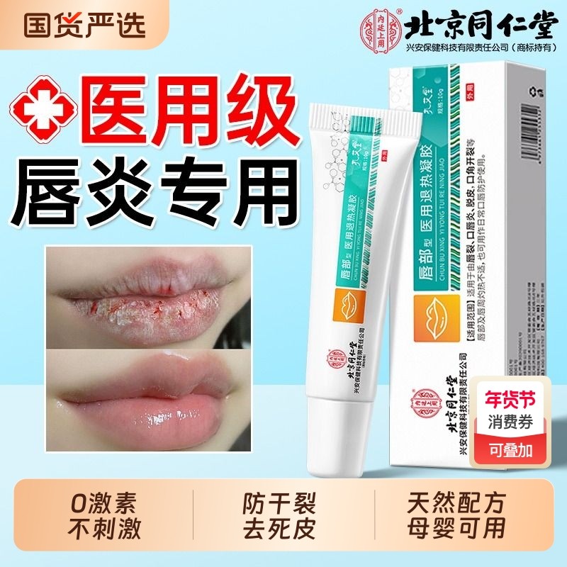 北京同仁堂唇炎专用唇膏嘴唇干裂脱皮医用型保湿滋润去死皮修护膏