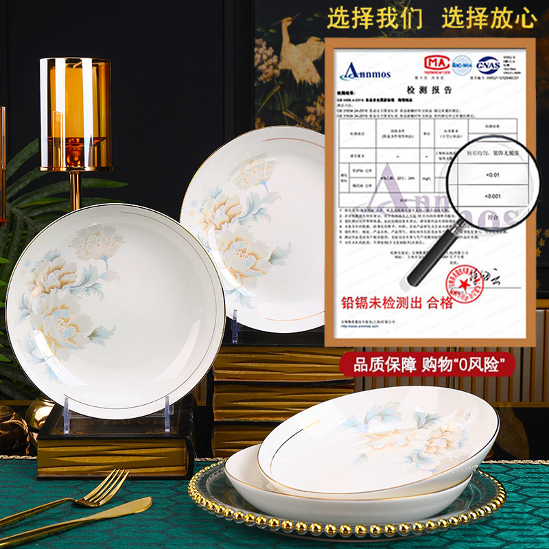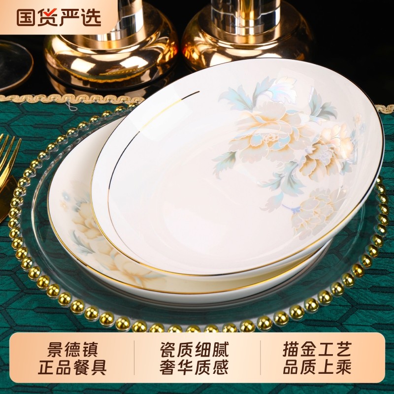 8英寸浅盘平盘凉菜盘景德镇陶瓷餐具家用碗碟盘子菜盘饭盘轻奢