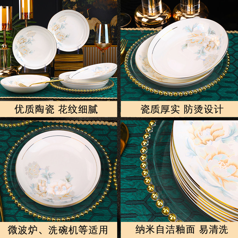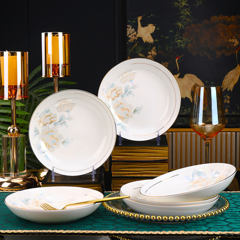 陶瓷家用盘碗5个菜盘1汤碗圆盘子大汤碗水果盘饭盘碗碟子可微波炉