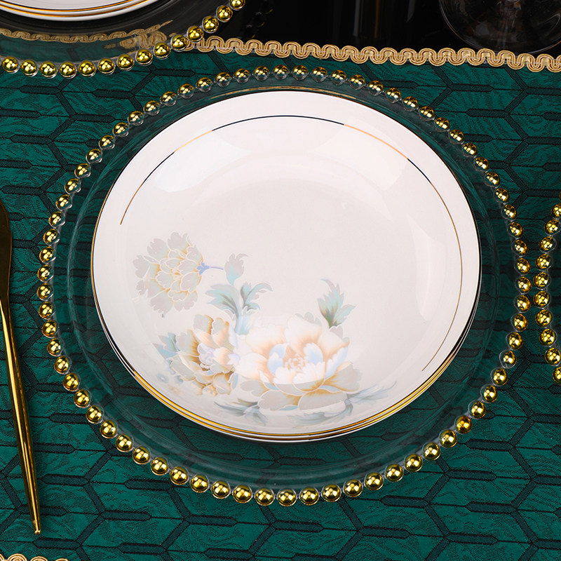 酒店摆台餐具四件套套装陶瓷碗碟盘勺饭店餐厅会所火锅店骨碟商用