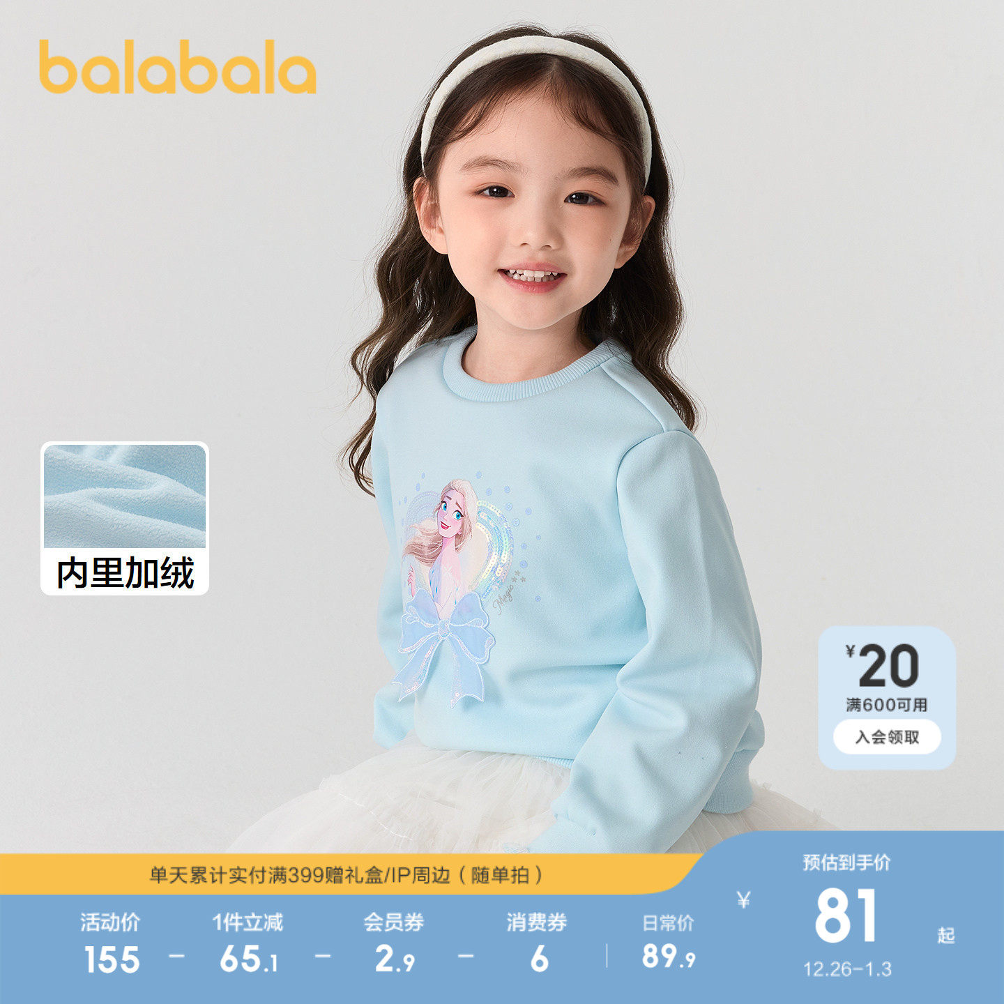 【爱莎IP】巴拉巴拉童装儿童加绒卫衣女童秋冬装上衣洋气休闲时尚