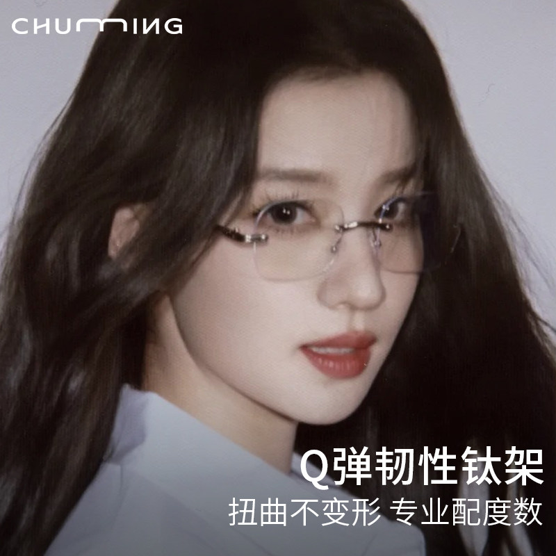 许我耀眼赵露思同款眼镜女许妍无框超轻纯钛仅6g近视可配蔡司镜片
