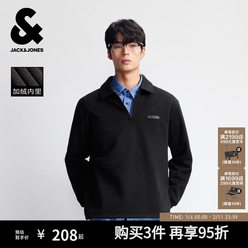 【加绒】杰克琼斯男装25年秋季新款宽松拉链POLO领卫衣外套PU皮标