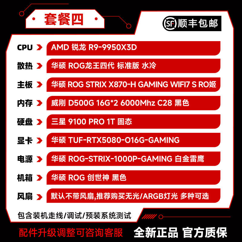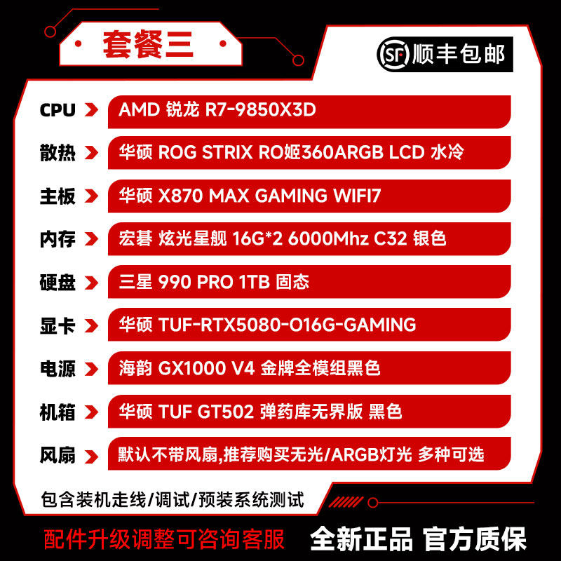 装机猿玩家店 华硕 PRIME/TUF-RTX5080/9800X3D/9850X3D 台式主机