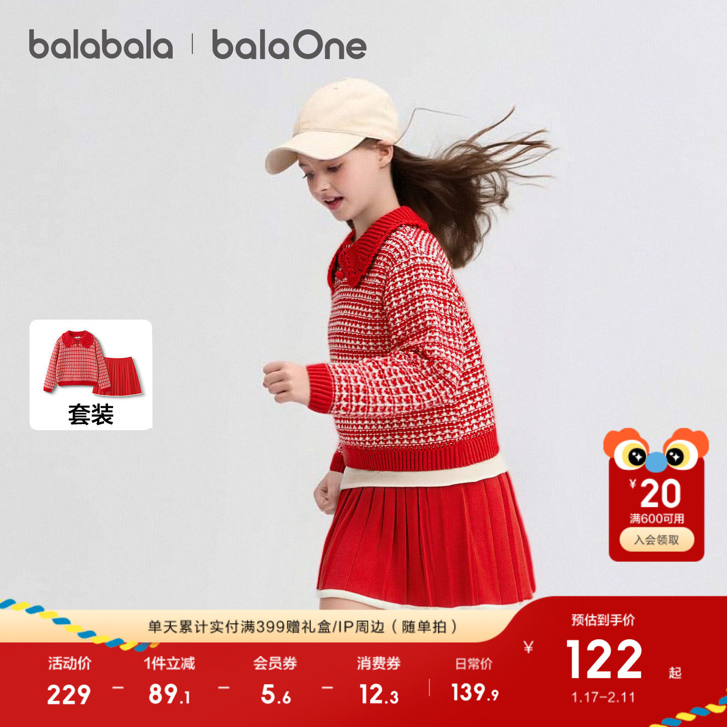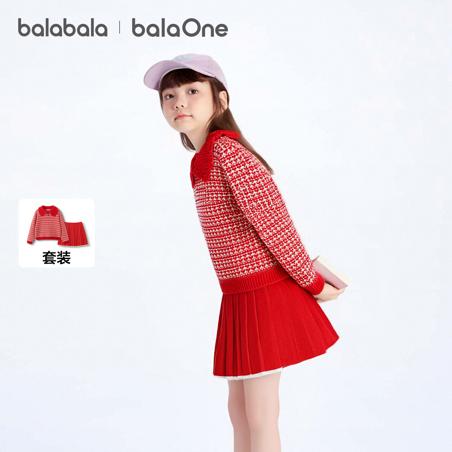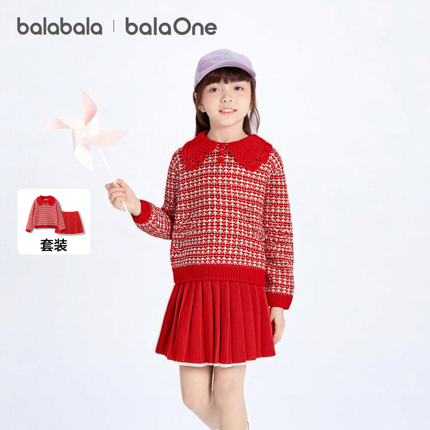 巴拉巴拉童装女童套装洋气2024春秋装中大童长袖甜美红色拜年服潮