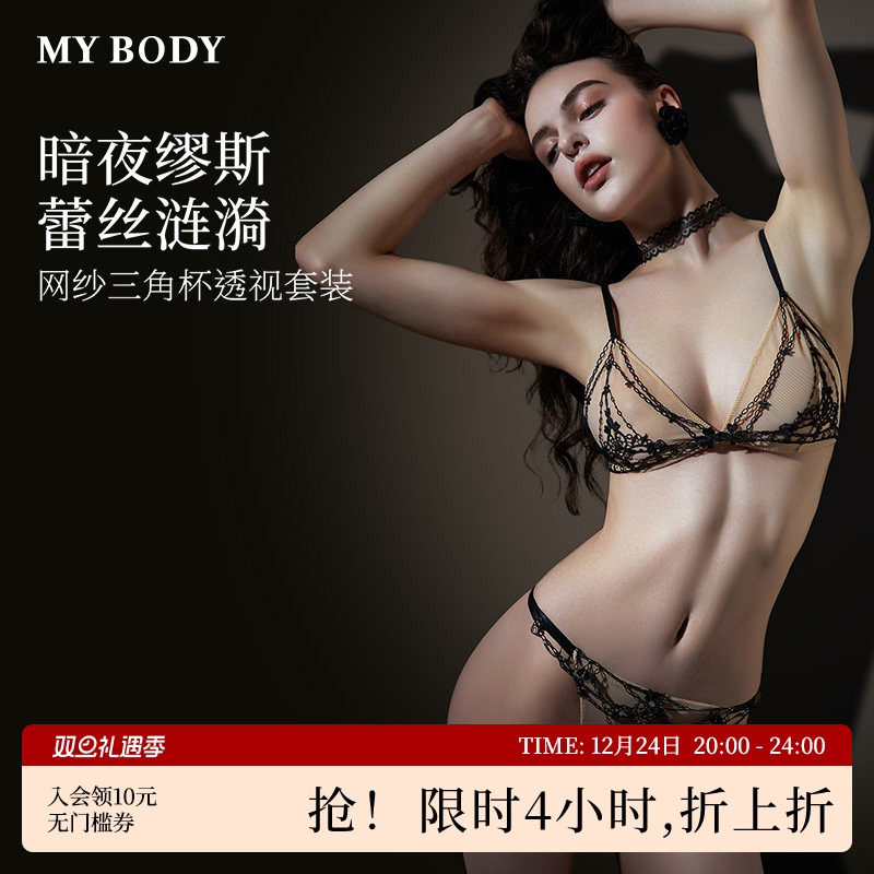 MYBODY商场同款内衣套装女蕾丝性感薄款网纱内裤文胸胸罩两件套