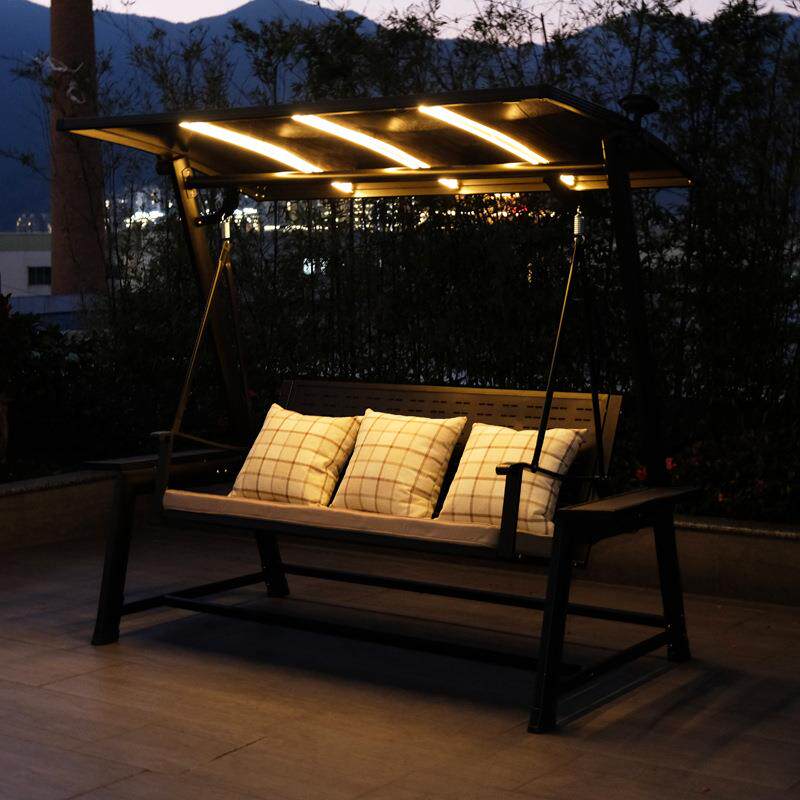 户外太阳能秋千阳台庭院室外荡秋千椅三人位防水加粗吊篮摇椅