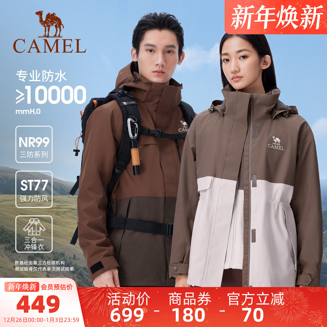 骆驼冲锋衣三合一可拆卸两件套男女情侣款外套户外防水旅游登山服