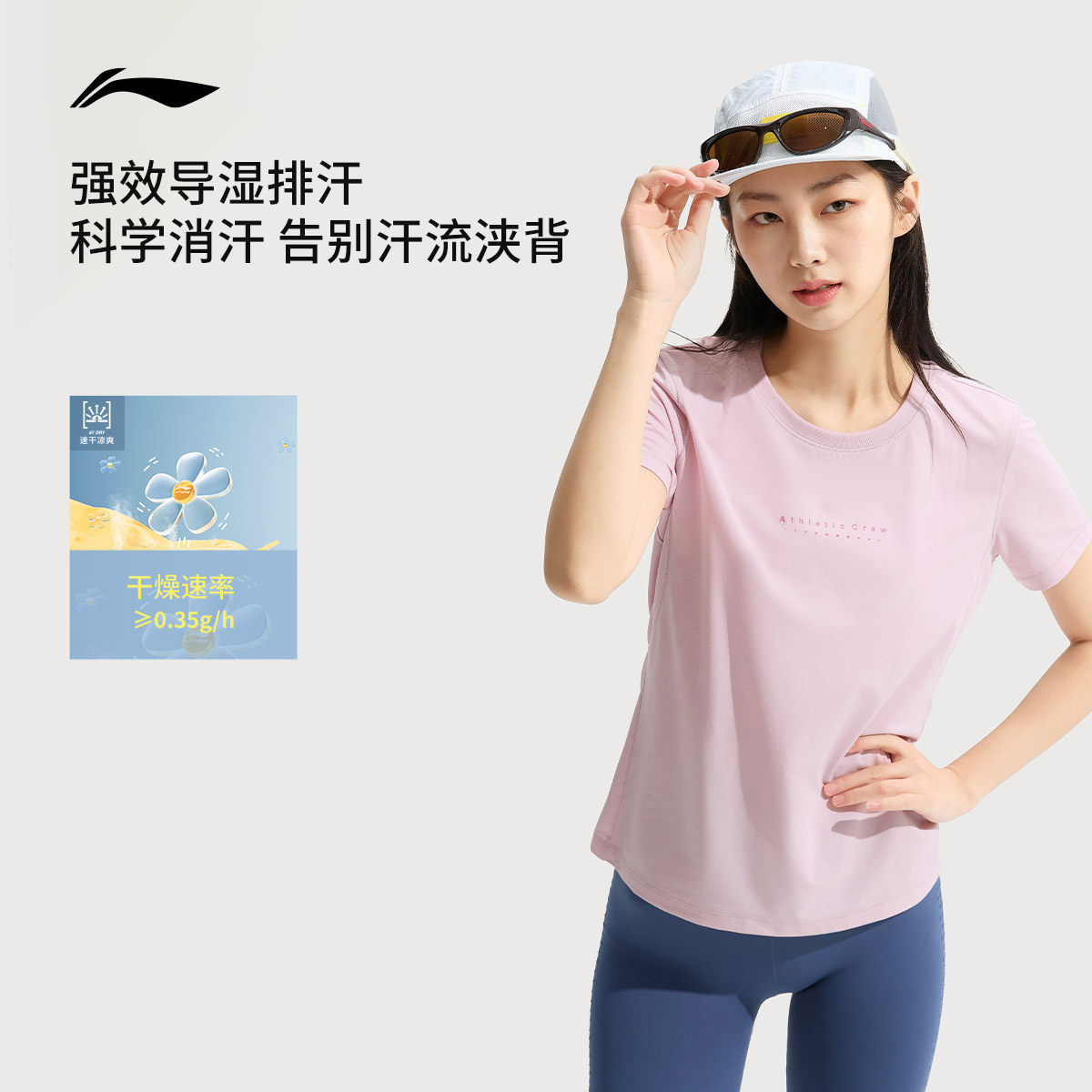 李宁凉茶 | 健身系列短袖T恤夏季女士2025新款圆领上衣针织运动服