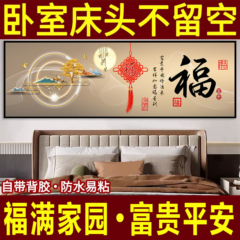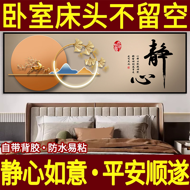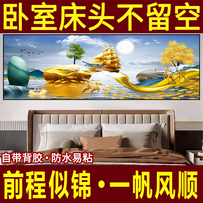 卧室床头装饰画客厅背景墙贴画自粘宾馆酒店客房高级感轻奢墙壁画