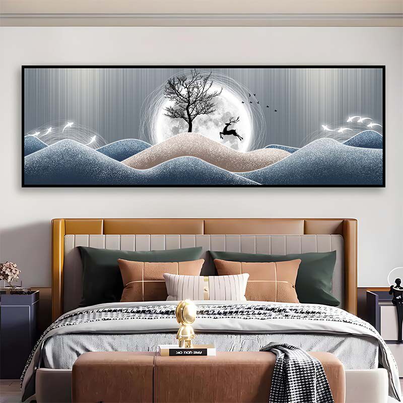 床头贴画装饰画客厅沙发背景自粘卧室墙贴3D现代风景轻奢山水墙纸