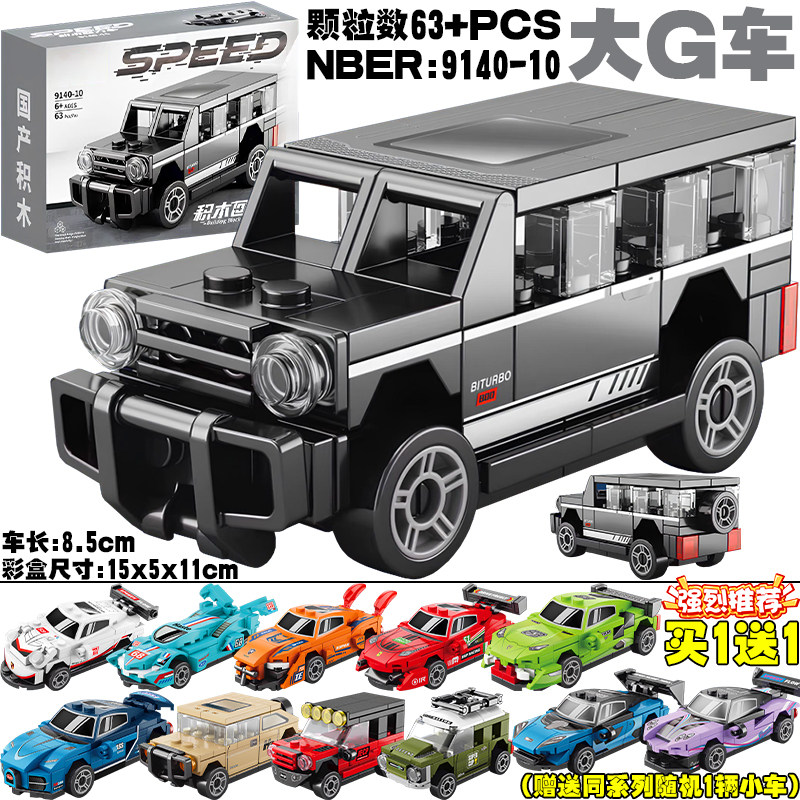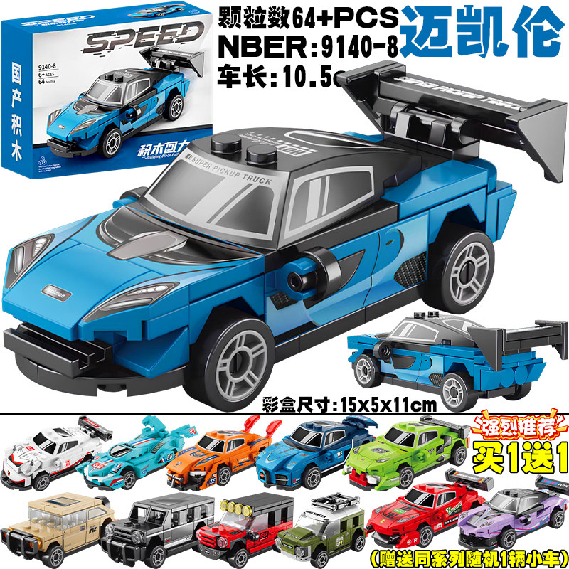 买一送一积木回力小赛车跑车拼装小颗粒儿童益智玩具汽车模型礼物