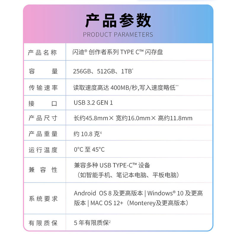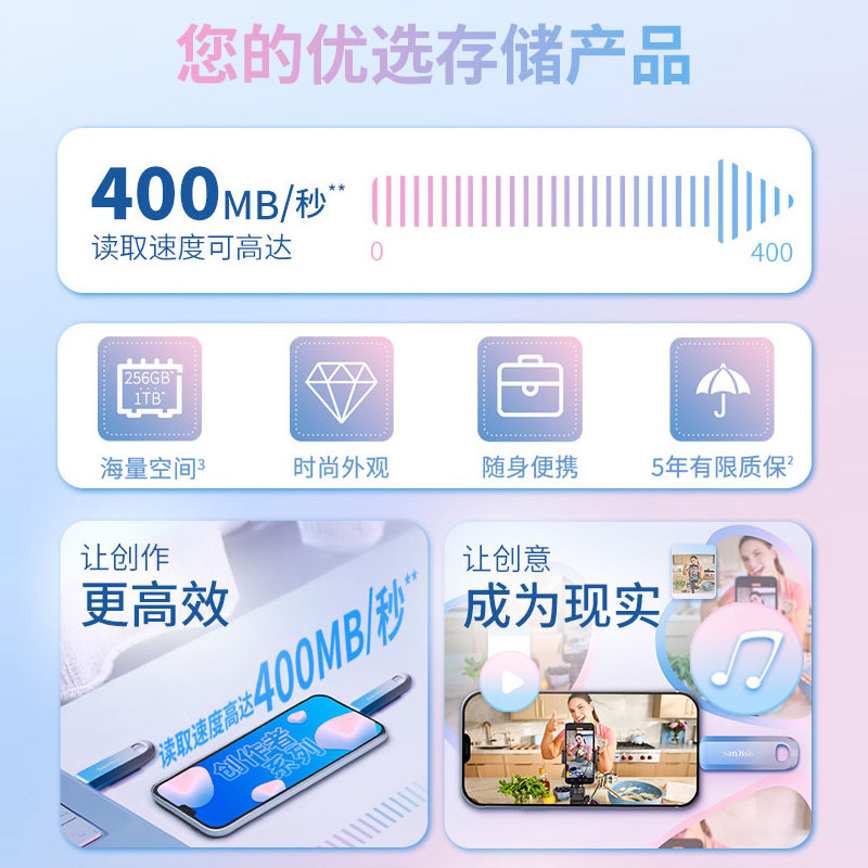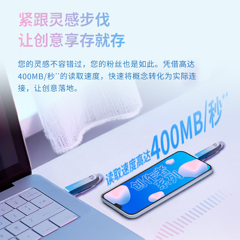 闪迪创作者256G U盘type-c笔记本电脑手机512G高速固态优盘便携式