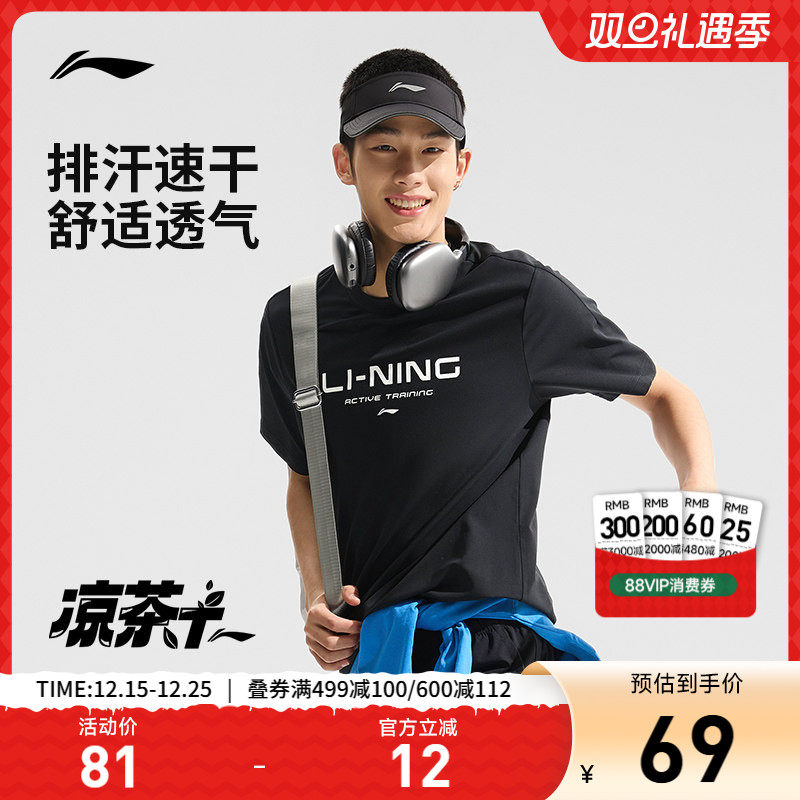 李宁凉茶T| 速干短袖T恤男士夏季新款健身训练服跑步透气运动上衣
