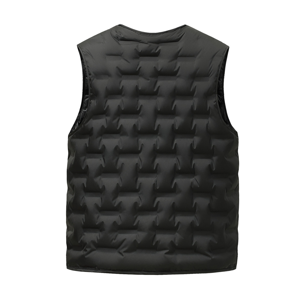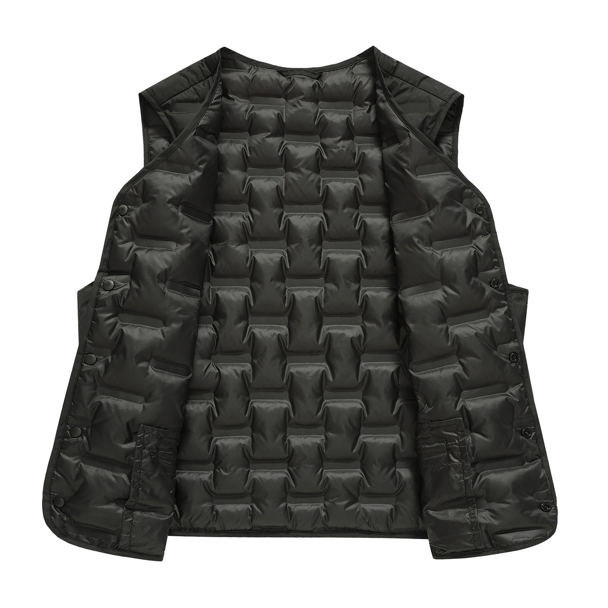 雪中飞2025冬新款男士V领爸爸款分格羽绒马甲无袖背心黑色大码