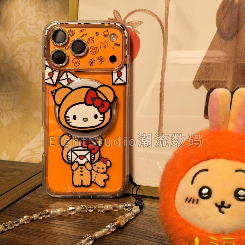 【限定HelloKitty联名暖绒絮语-泡泡骚强磁吸手机壳】小熊KT磁吸支架适用iphone17promax苹果16Pro15/14